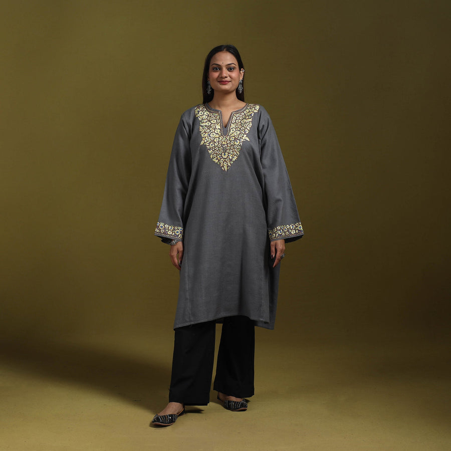 Sozni Hand Embroidered Kashmiri Merino Wool Pheran 59