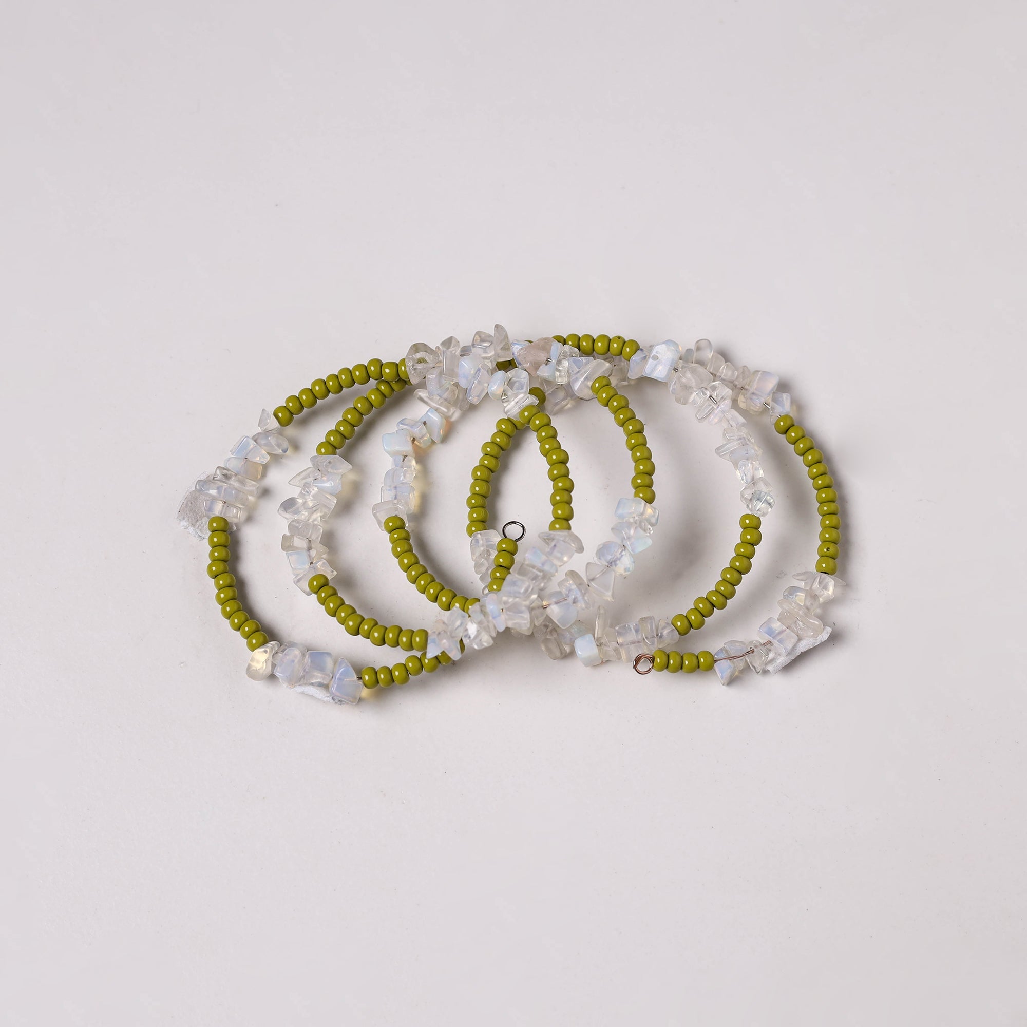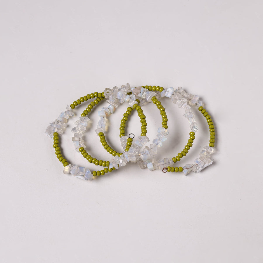 Material Spiral handmade beaded bracelet by Sujata Gokhale. This handmade jewelry is an eclectic collection of beads and gemstones. It features a stunning spiral design that showcases artistry and unique charm.