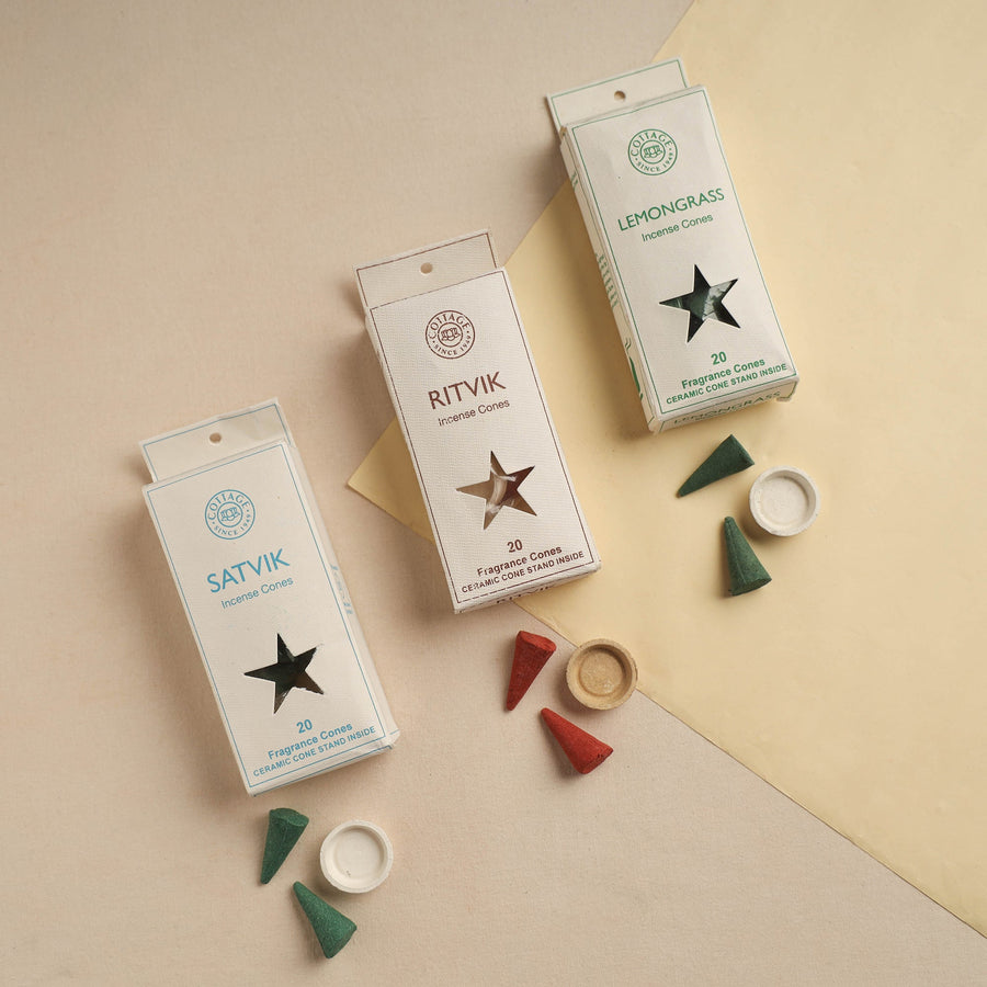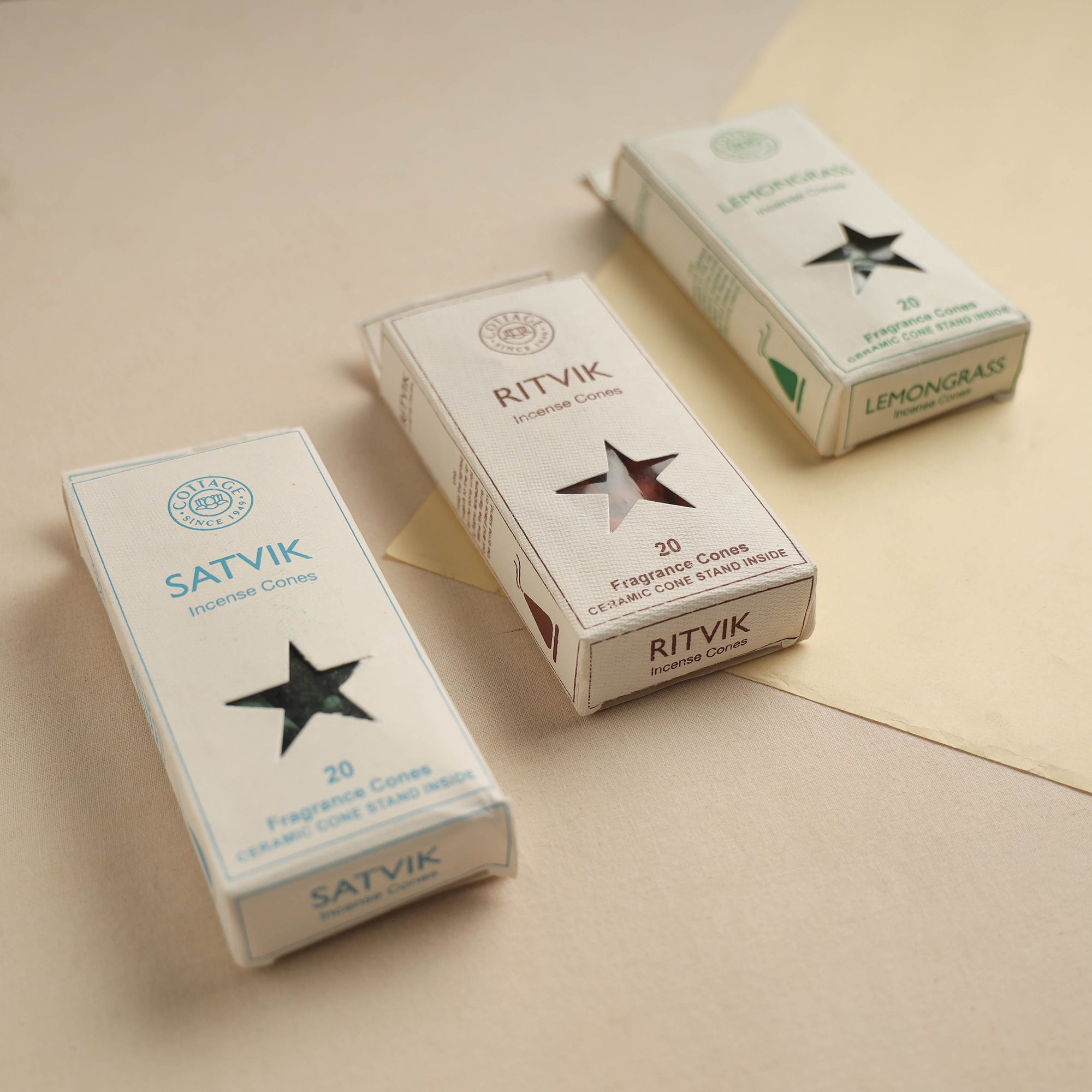 Sanctify your surroundings by lighting these special incense cones and create an atmosphere of peace and serenity. The cones are crafted from a paste of dried flower petals, aromatic herbs and woods, spices, resins, charcoal, and natural essential oils. Ideal for daily puja, meditation, relaxation, or simply refreshing your space with a soothing aroma. The skilled and manual processes involved provide sustainable employment to underprivileged women.