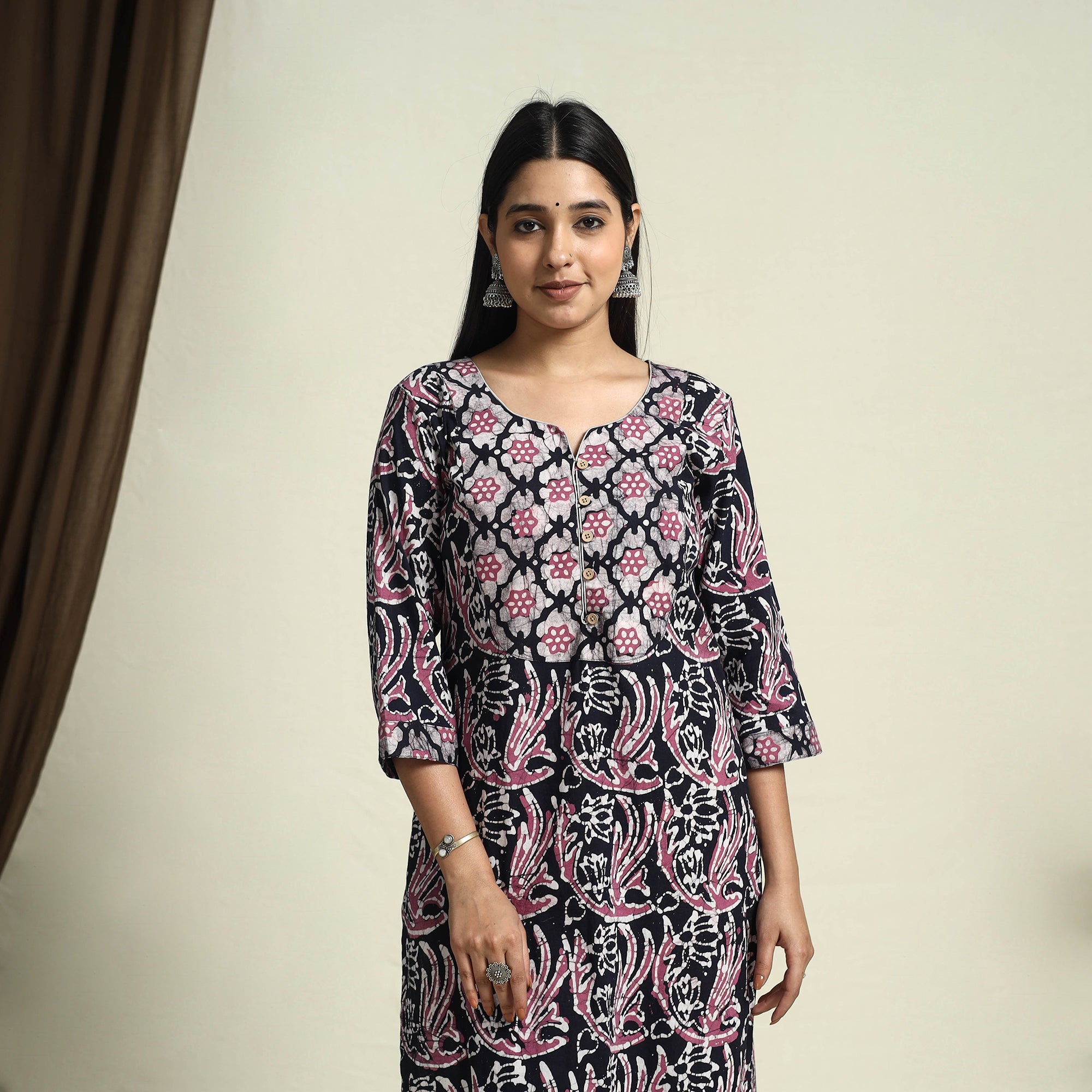 Add effortless charm to your wardrobe with this straight blue batik print cotton kurta. Crafted using the traditional resist-dye batik technique, it features long-lasting patterns. The breathable cotton ensures all-day comfort, while the one-side pocket adds a touch of functionality. Perfect for casual outings, office wear, or relaxed gatherings.