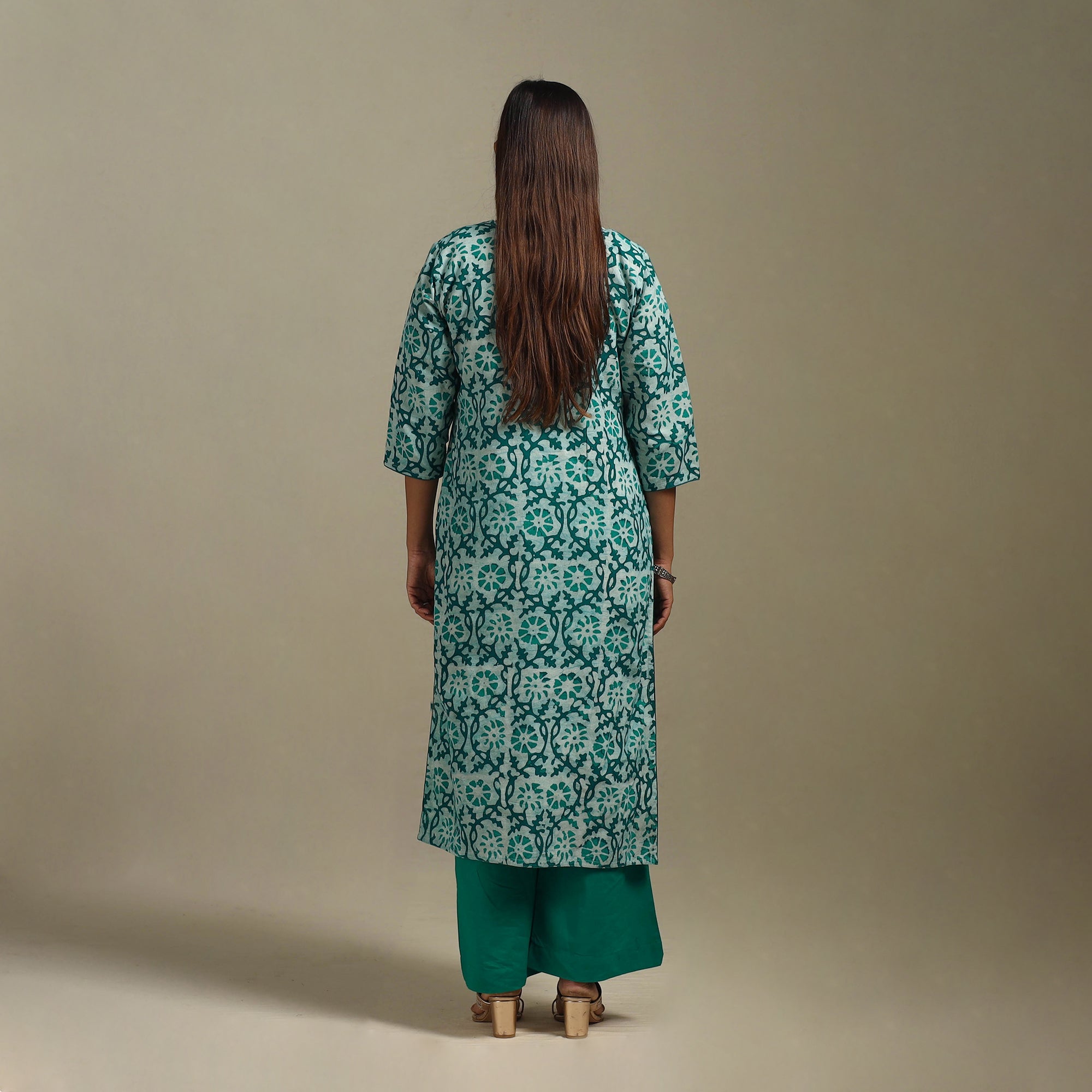 Hand batik print straight kurta is a perfect mix of tradition and comfort. Created using an age-old wax-resist dyeing process, it features intricate, hand-applied batik block patterns. The breathable cotton fabric keeps you relaxed all day. With a comfortable fit and a side pocket, it’s great for casual outings, office or daily wear.