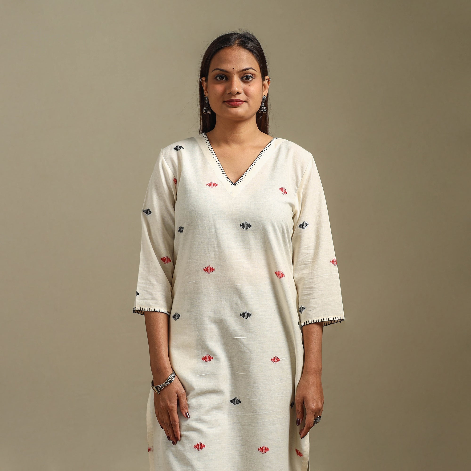 Straight Cotton Hand Embroidered Jamdani Border Thread Buti Kurta for women 03