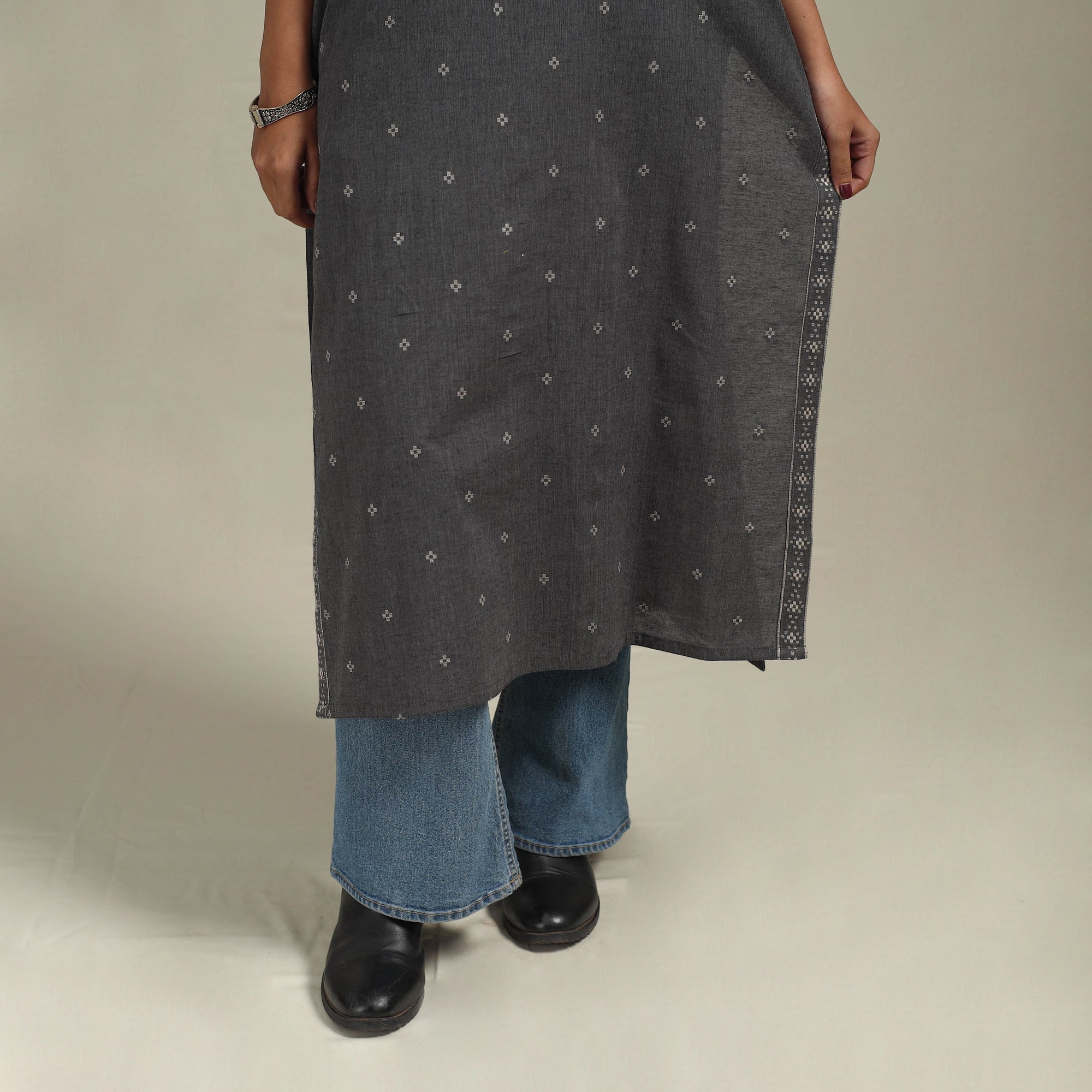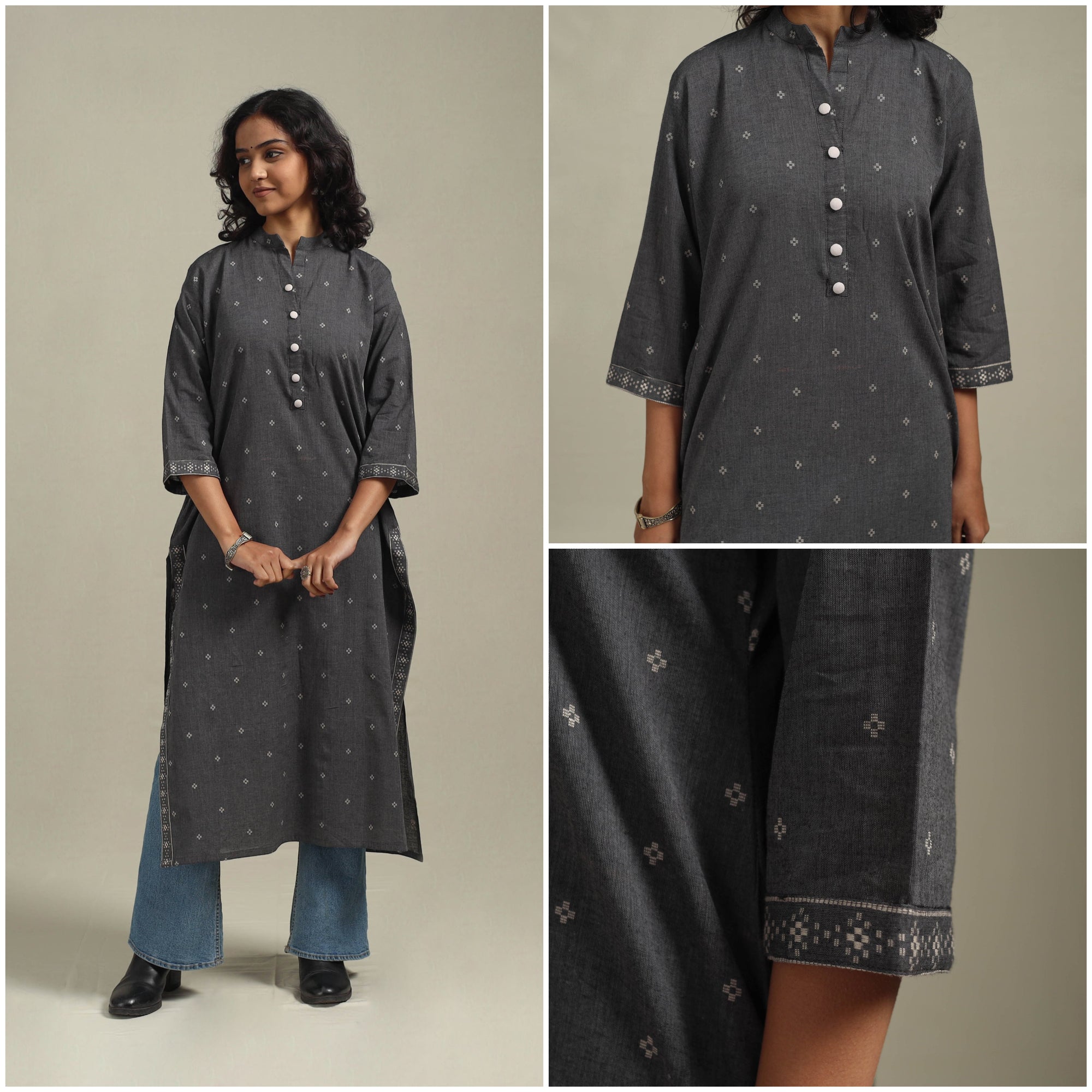 • Grey - straight cotton jacquard kurta 06 - handcrafted