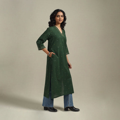 • Green - straight cotton jacquard kurta 11 - handcrafted
