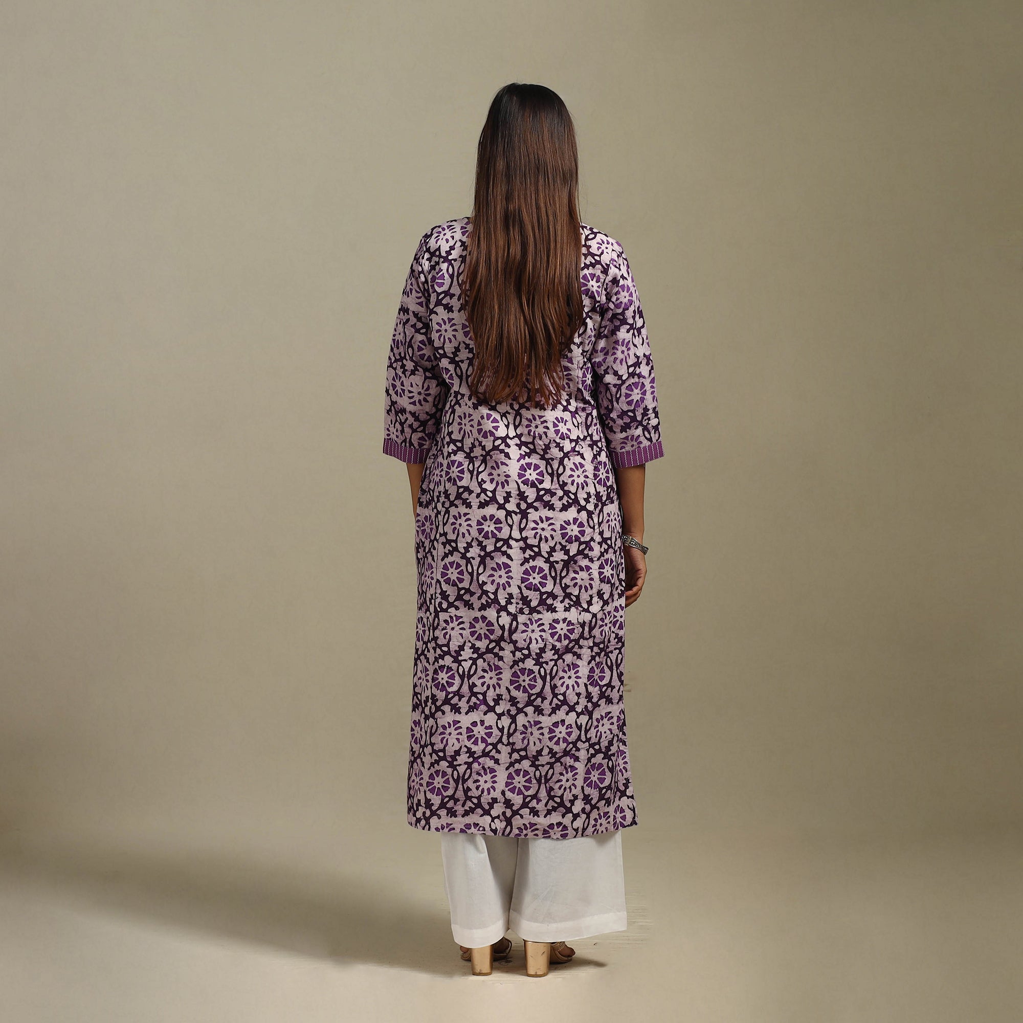 Hand batik print straight kurta with patchwork is a perfect mix of tradition and comfort. Created using an age-old wax-resist dyeing process, it features intricate, hand-applied batik block patterns. The breathable cotton fabric keeps you relaxed all day. With a comfortable fit and a side pocket, it’s great for casual outings, office or daily wear.