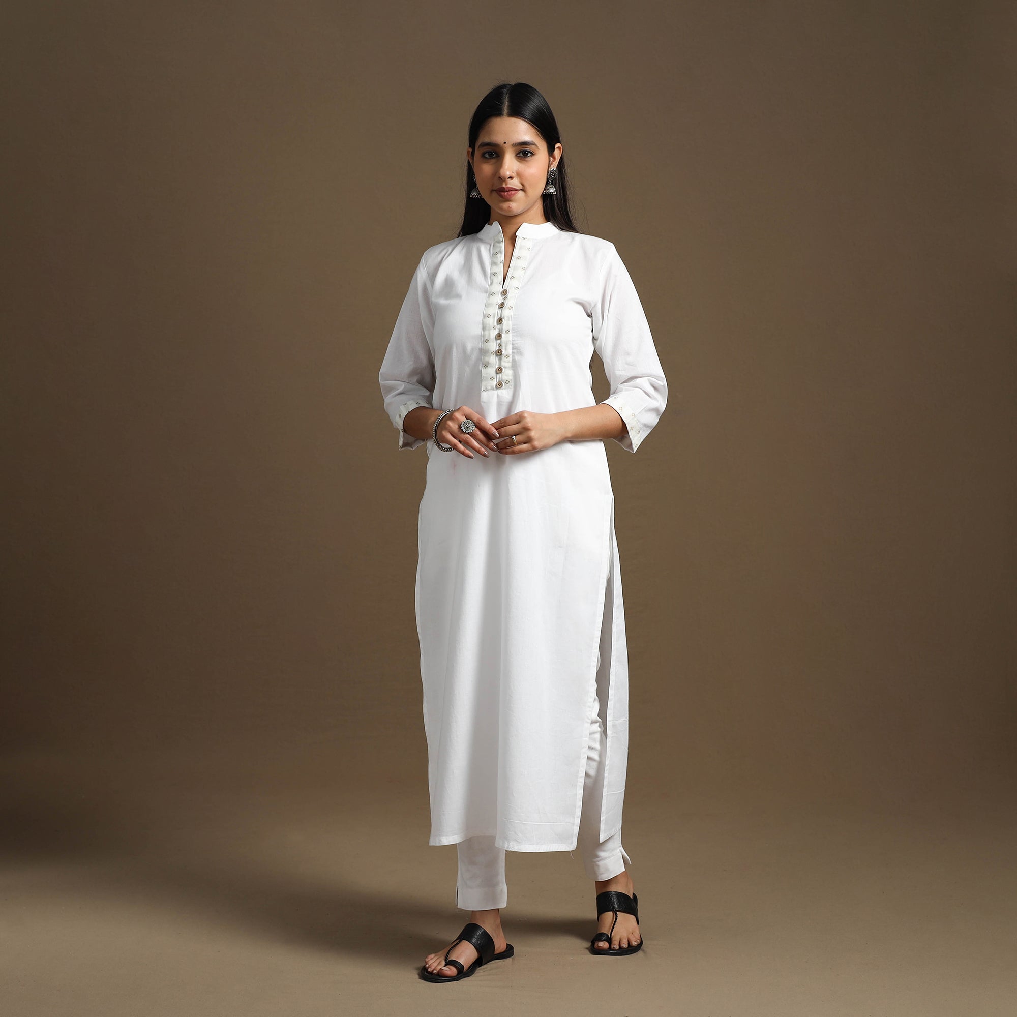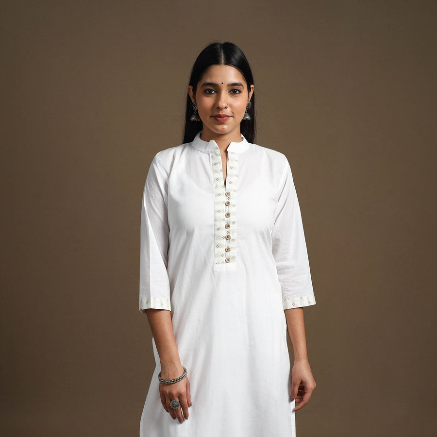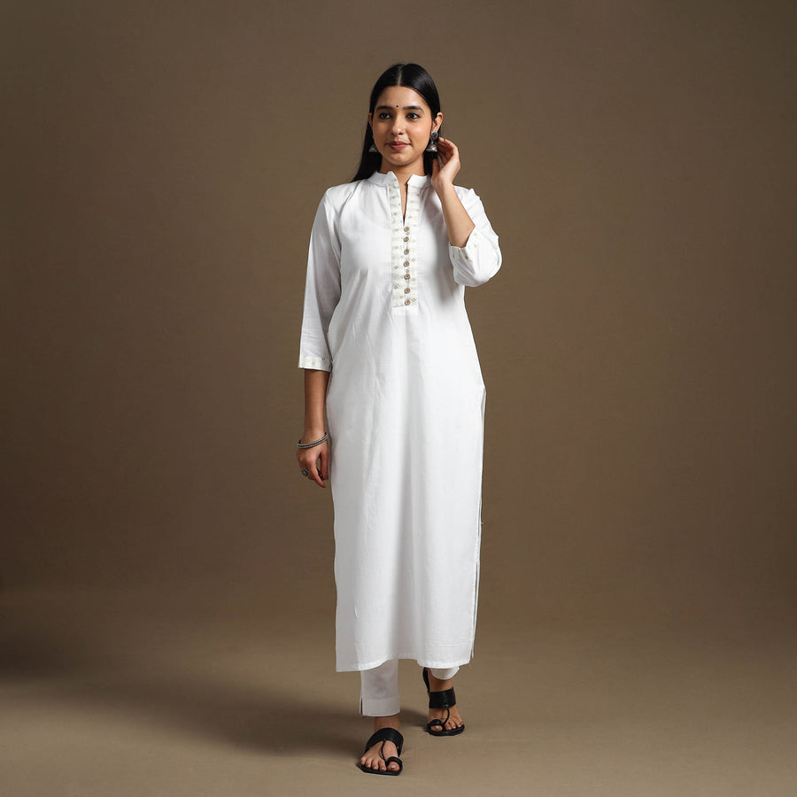 Look and feel beautiful in this uniquely designed white straight plain cotton kurta. Crafted for all-day comfort, it features a soft, breathable fabric and a convenient side pocket. This kurta is perfect for your daily outings and festive occasions.