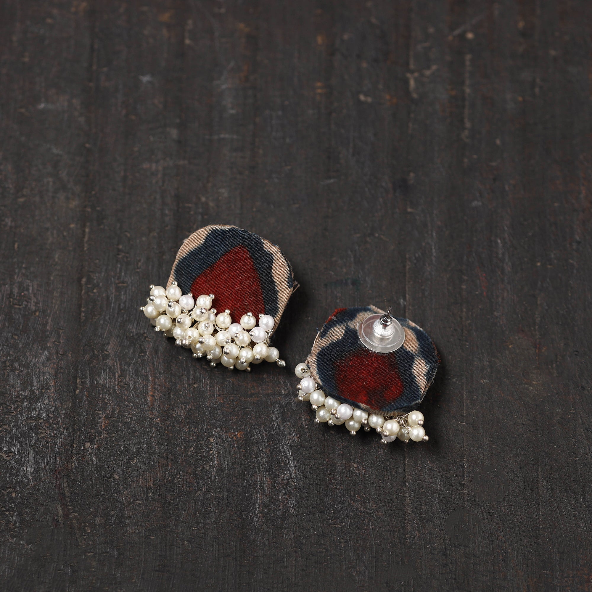 Add a touch of handcrafted charm to your ensemble with these maroon fabart pearl earrings. Made by skilled artisans, each pair beautifully combines delicate pearl accents with a fabric based design. These earrings represent a perfect fusion of traditional aesthetics and modern flair ideal for festive occasions, everyday style, or thoughtful gifting.