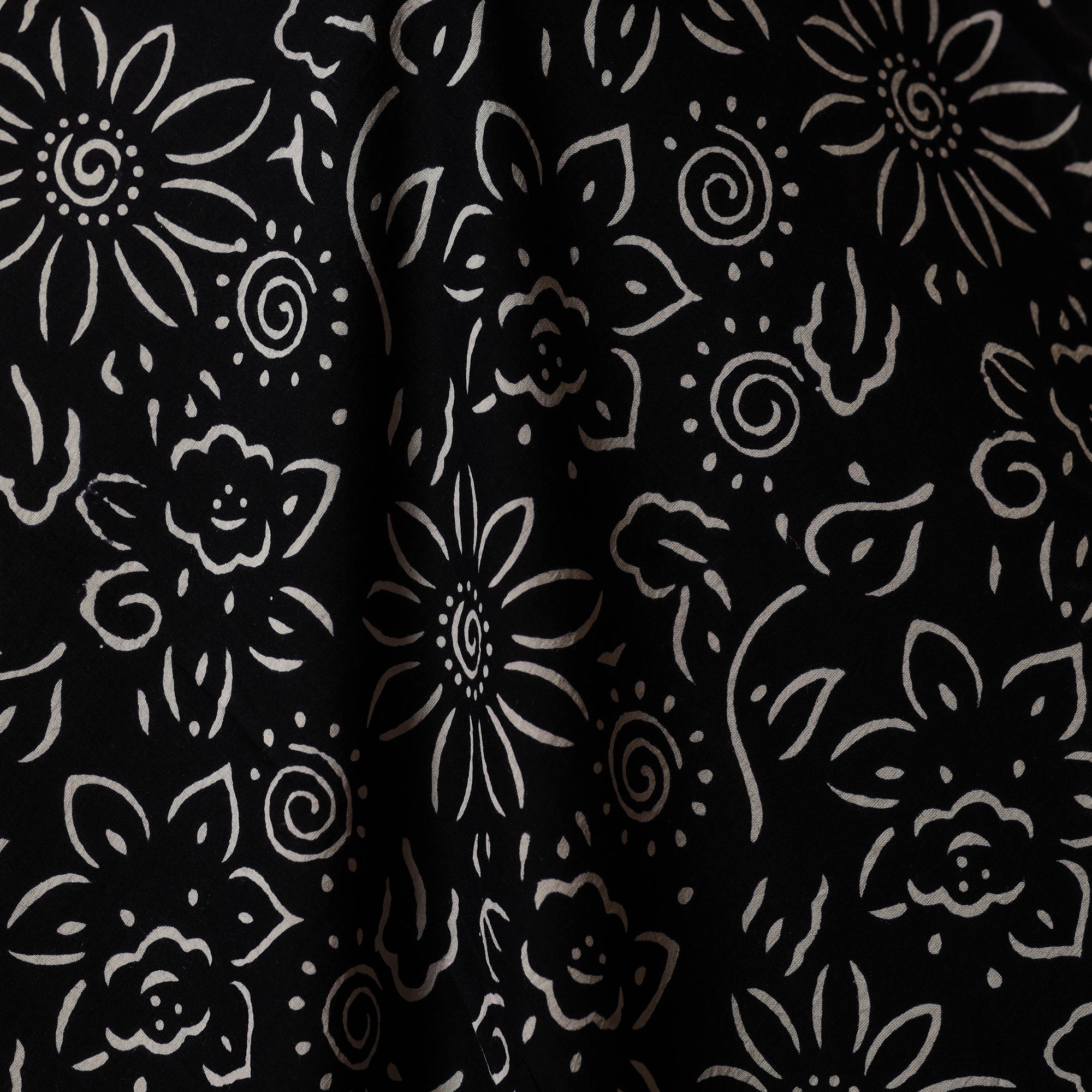 Black syahi begar bagru fabric is crafted in Rajasthan using traditional hand block printing techniques. Each piece reflects the rich heritage of Bagru artisans. Made from 100% pure cotton, it is Ideal for creating elegant apparel, home decor and accessories.
