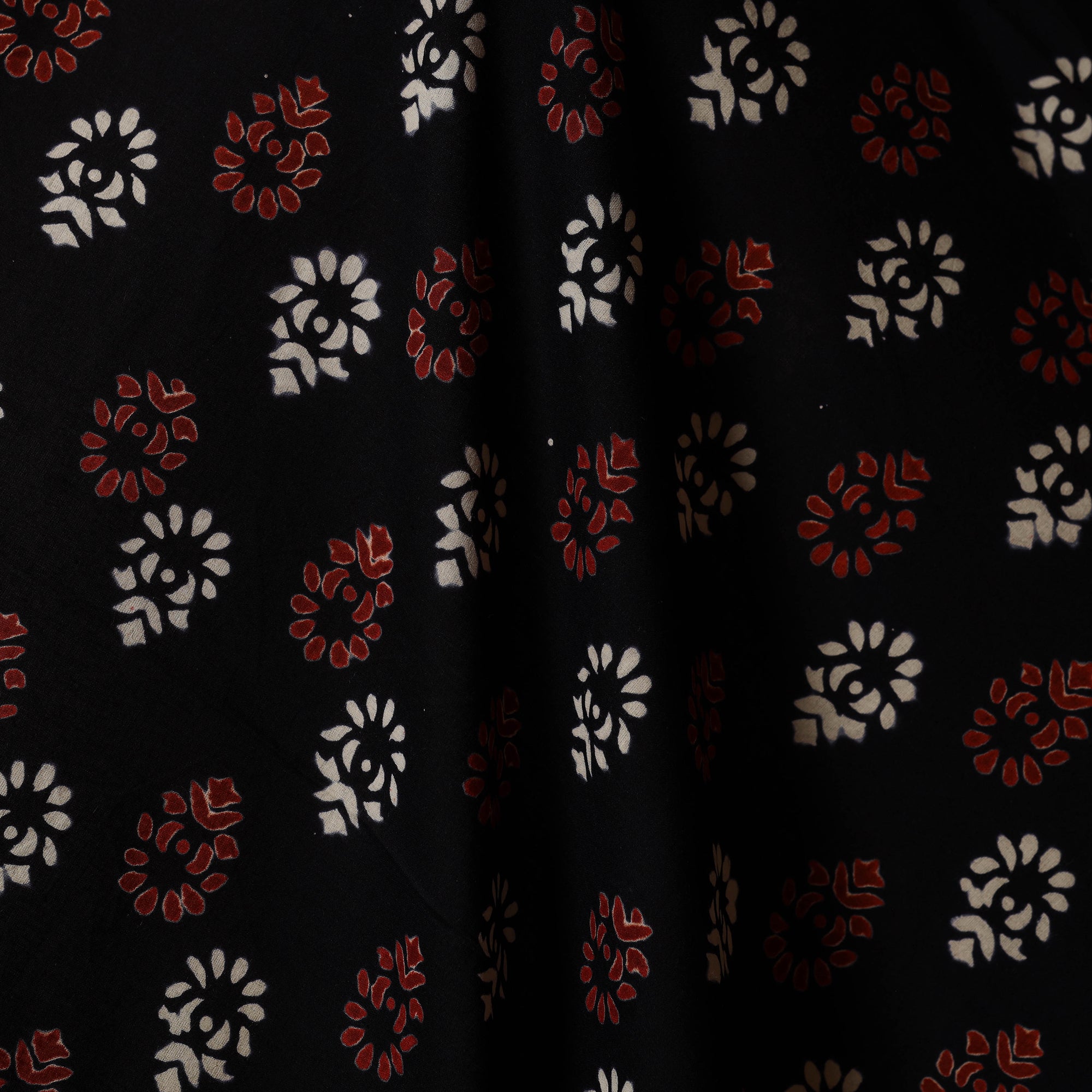 Black syahi begar bagru fabric is crafted in Rajasthan using traditional hand block printing techniques. Each piece reflects the rich heritage of Bagru artisans. Made from 100% pure cotton, it is Ideal for creating elegant apparel, home decor and accessories.