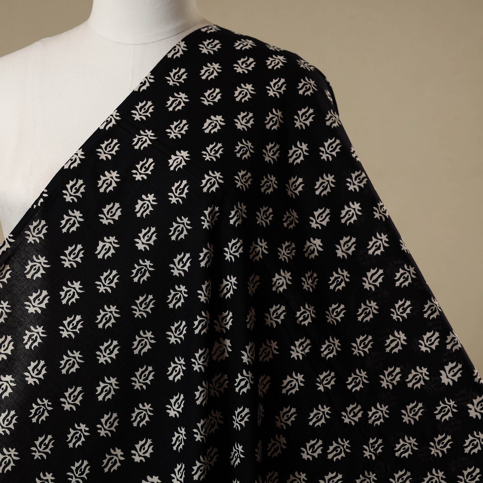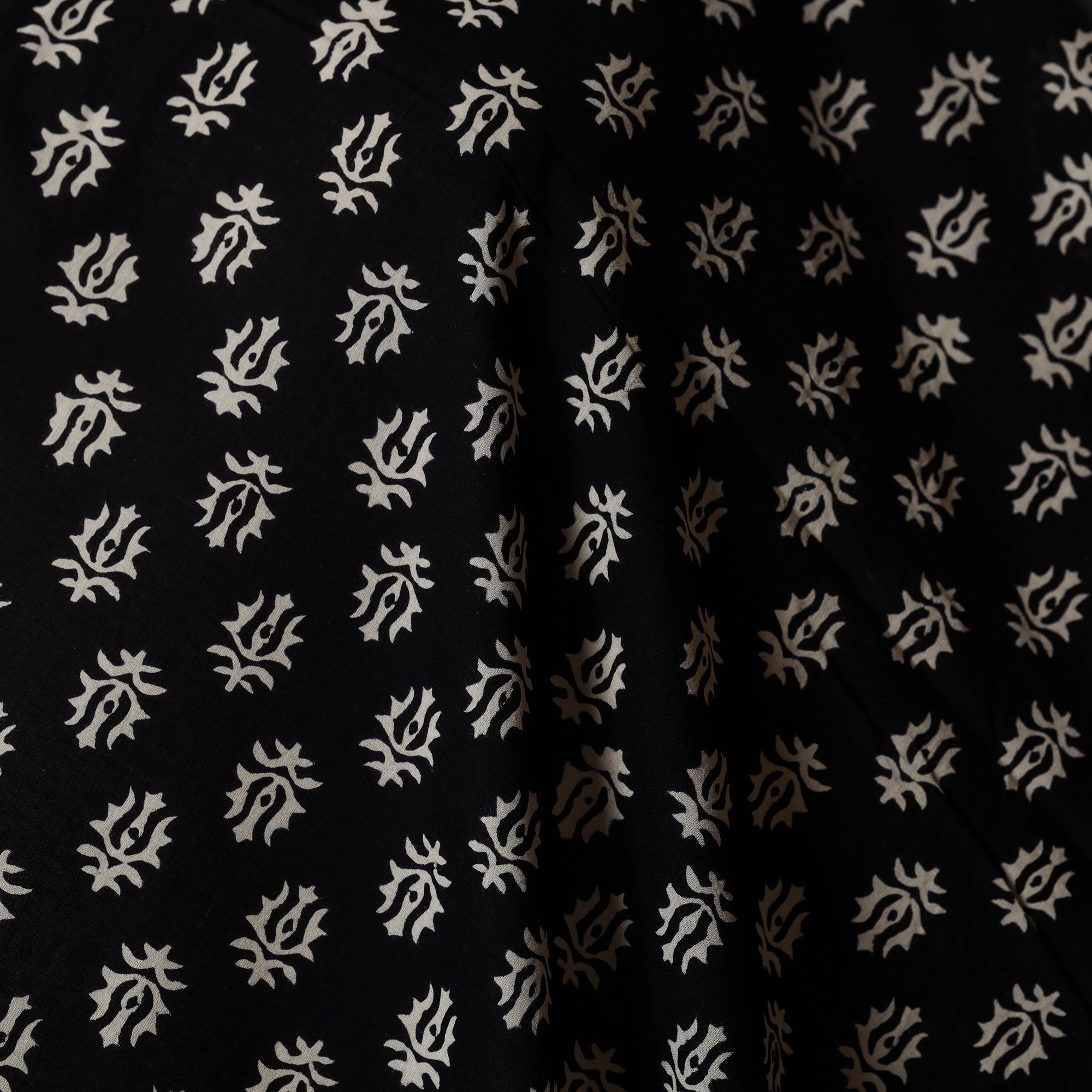 Black syahi begar bagru fabric is crafted in Rajasthan using traditional hand block printing techniques. Each piece reflects the rich heritage of Bagru artisans. Made from 100% pure cotton, it is Ideal for creating elegant apparel, home decor and accessories.