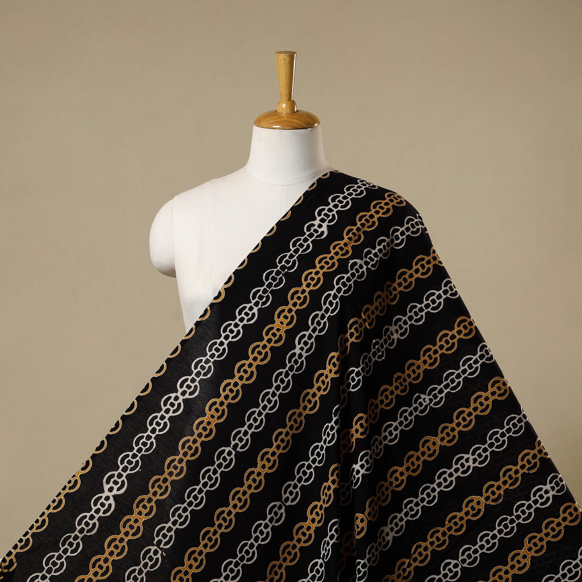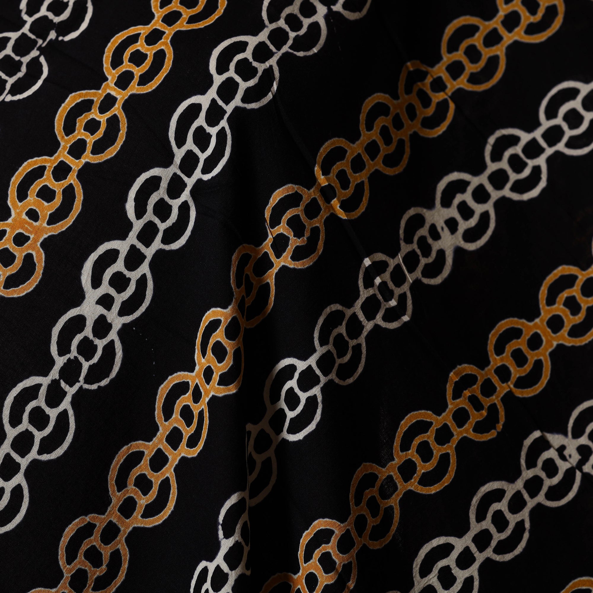 Black syahi begar bagru fabric is crafted in Rajasthan using traditional hand block printing techniques. Each piece reflects the rich heritage of Bagru artisans. Made from 100% pure cotton, it is Ideal for creating elegant apparel, home decor and accessories.