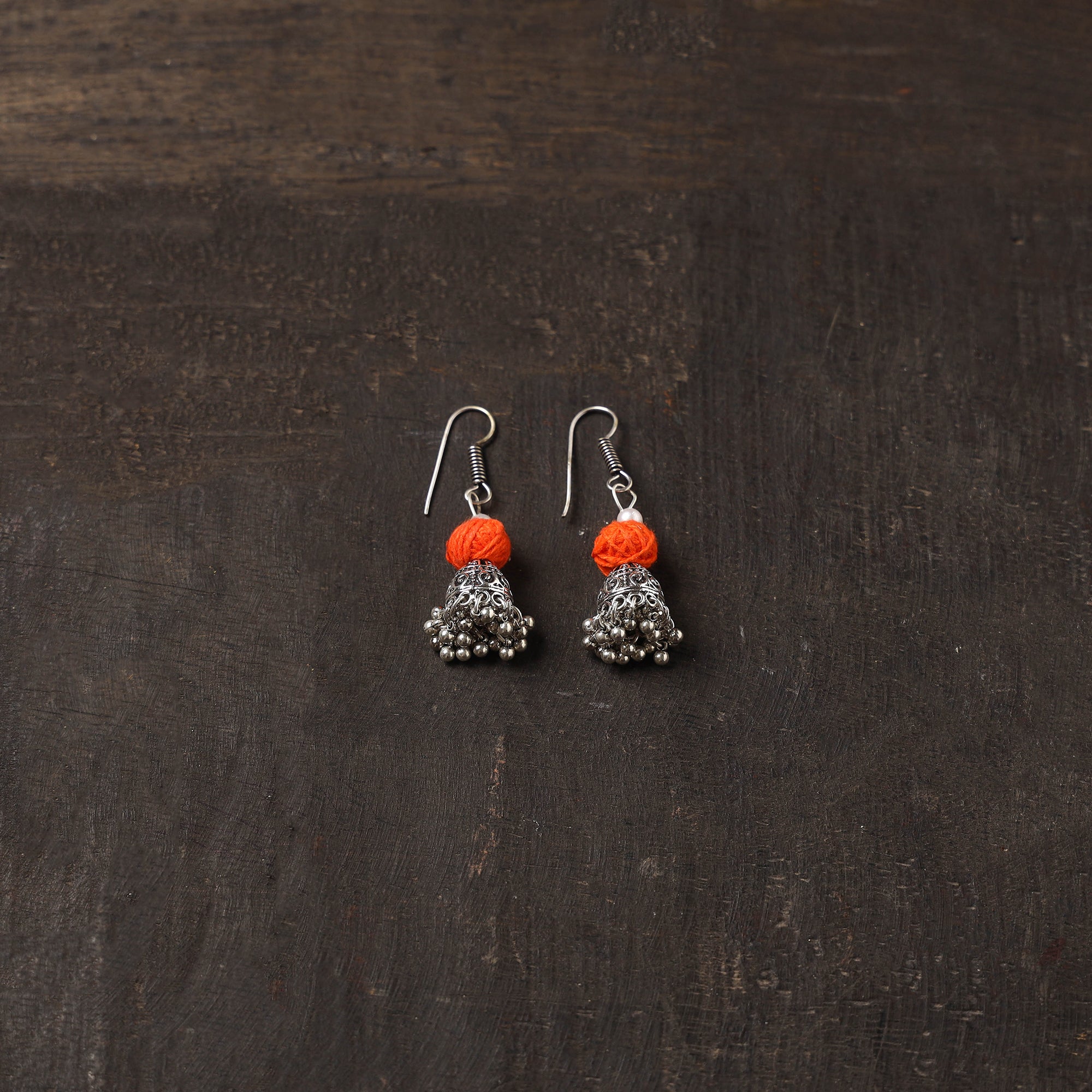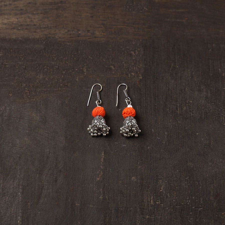 Handcrafted german silver jhumki earrings are beautifully detailed with orange thread beads. Made by iskilled artisans, they offer a lightweight, and perfect for adding a unique charm to festive and everyday looks. German silver adds durability and is known for its strong, long-lasting finish.