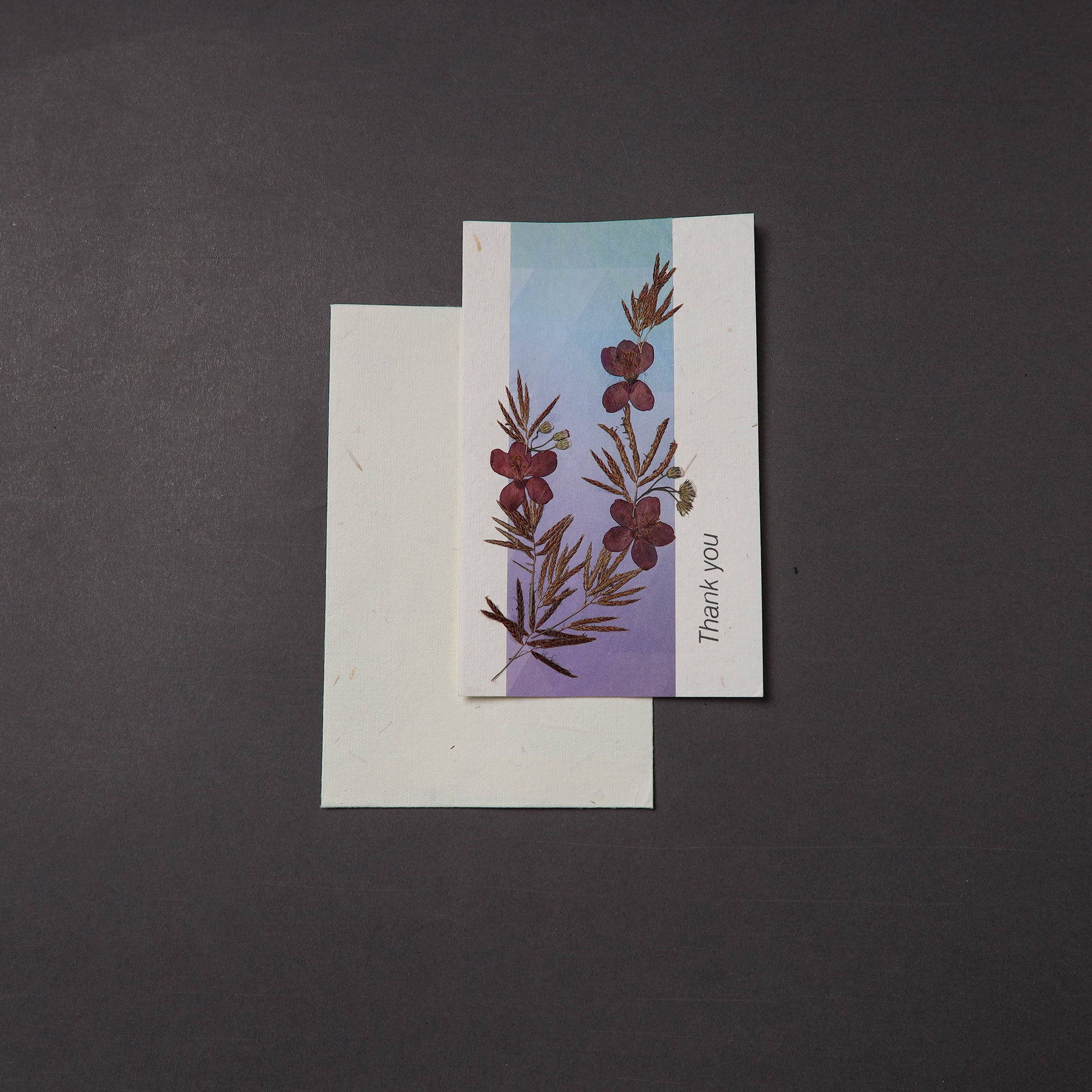 Capture the beauty of nature with flower art handmade greeting card. This card is crafted using recycled cotton and rice straw, featuring intricate pressed flowers and leaves that add a personal, eco-friendly touch. This card come with a matching envelope and are a true reflection of sustainable craftsmanship.