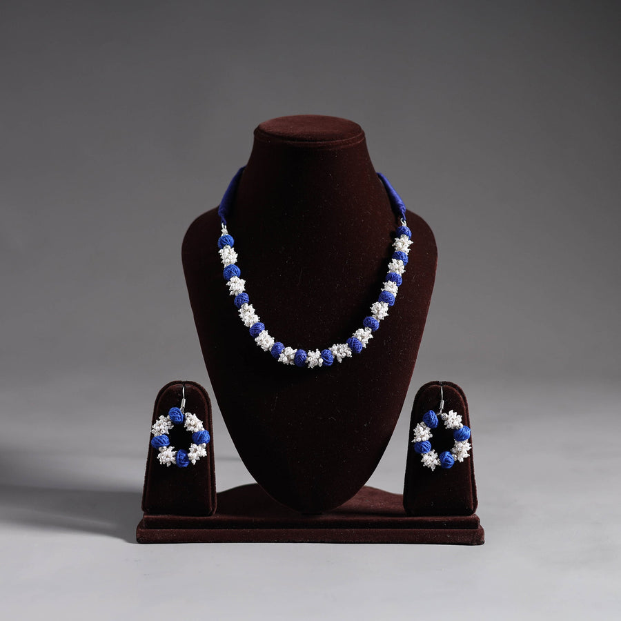 Blue Thread Beads Handmade Necklace Set. This Handmade necklace set consists a pair of earrings. Perfect for any occasion, it adds a touch of traditional charm to your ensemble, elevating your style effortlessly.