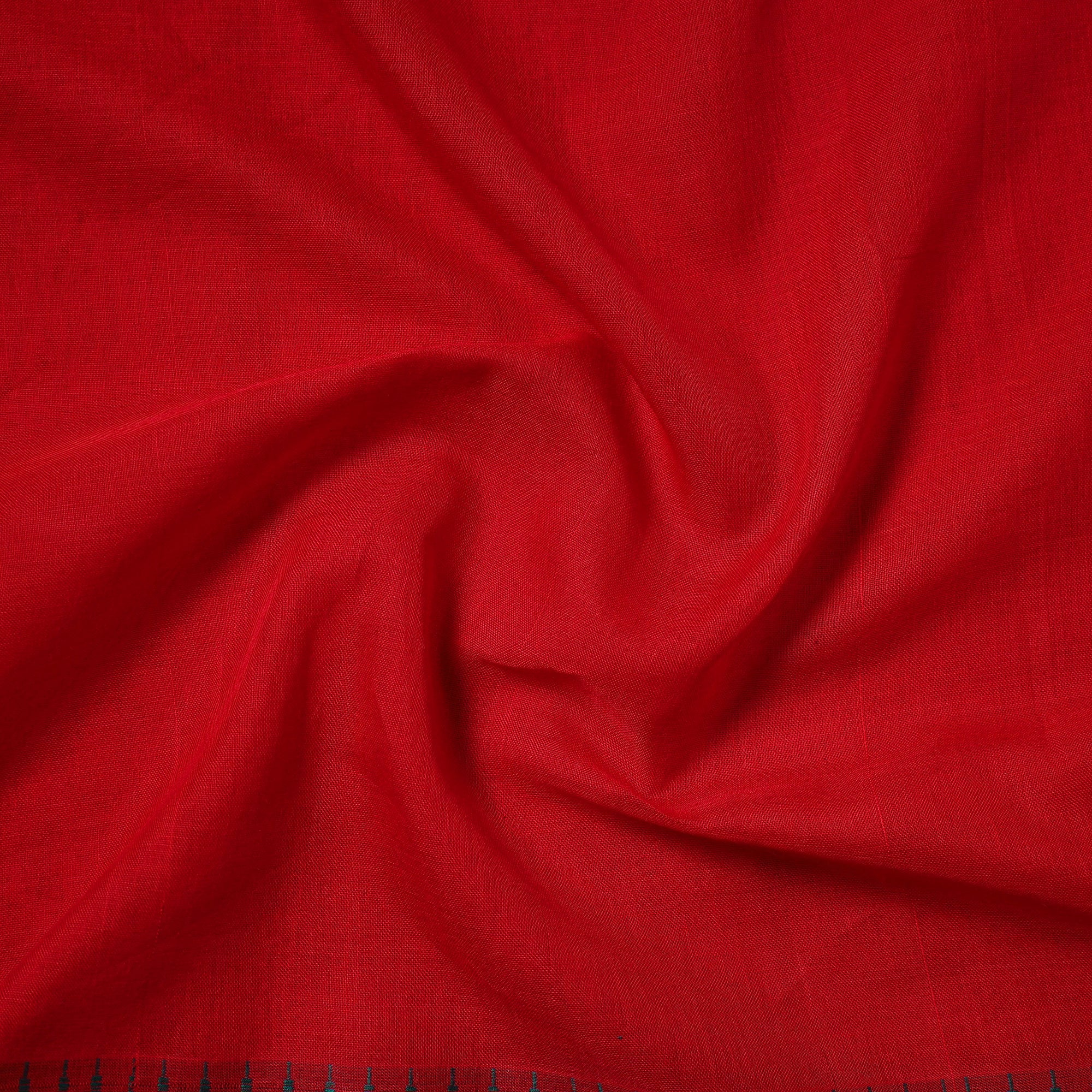 Red dharwad cotton fabric with a traditional thread-woven border from Dharwad, Karnataka. This is a machine-made fabric with no handmade process involved. Perfect for a range of attire, home decor, and craft projects, it adds a touch of heritage to your creations.