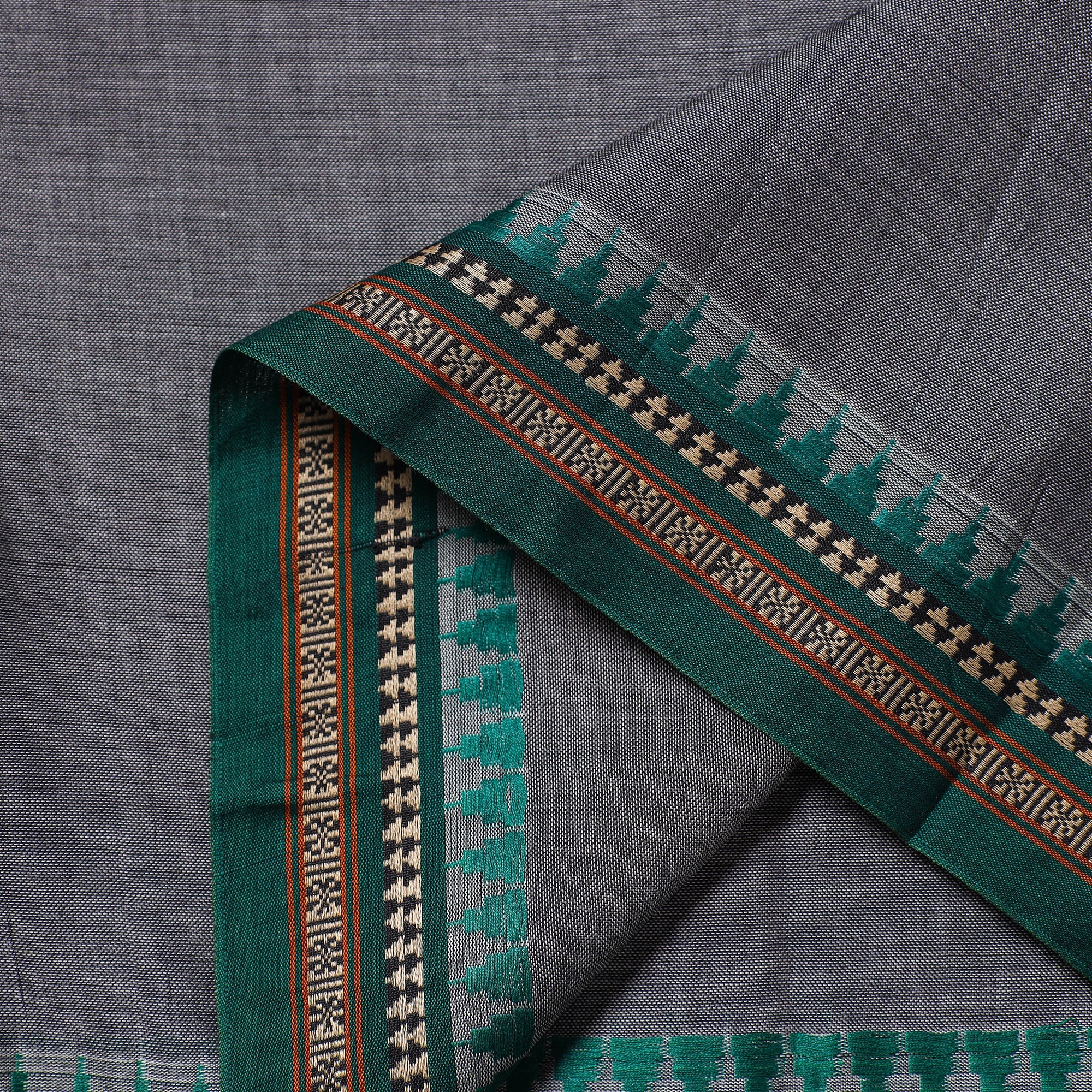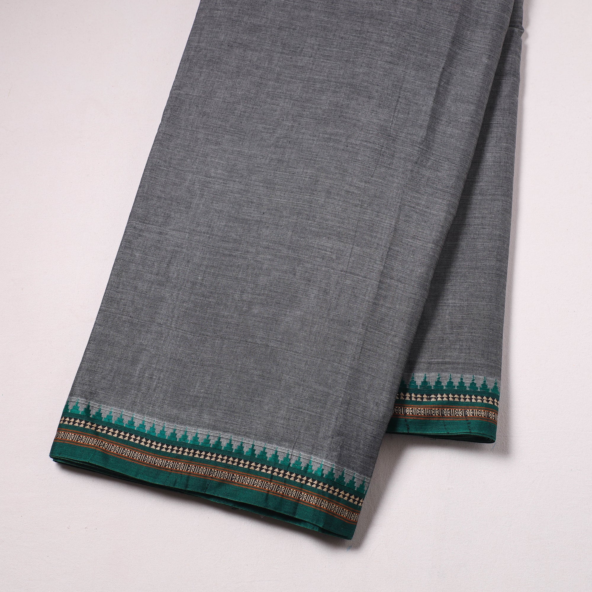 Grey dharwad cotton fabric with a traditional thread-woven border from Dharwad, Karnataka. This is a machine-made fabric with no handmade process involved. Perfect for a range of attire, home decor, and craft projects, it adds a touch of heritage to your creations.