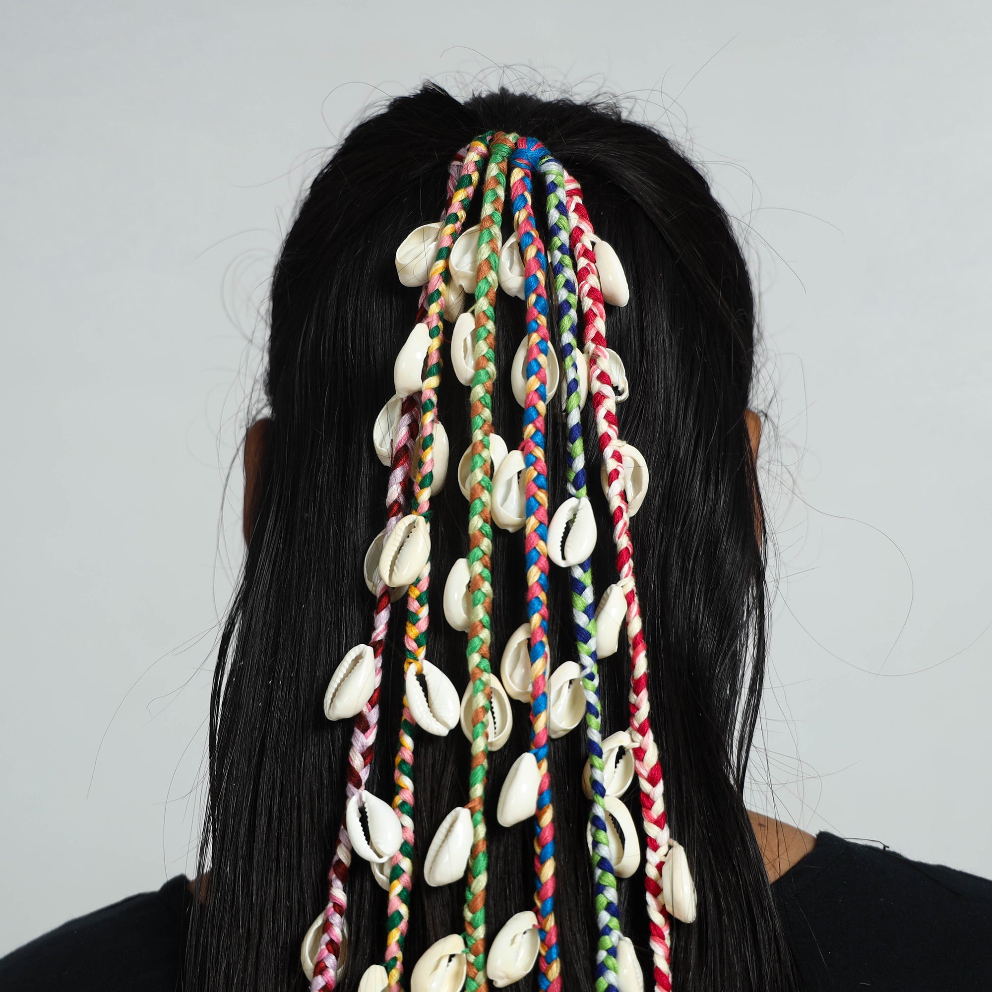Handcrafted thread braided hair strings made by the artisans. Crafted with love using vibrant threads and adorned with intricate details. Ideal for women and girls who love to incorporate traditional into their look.