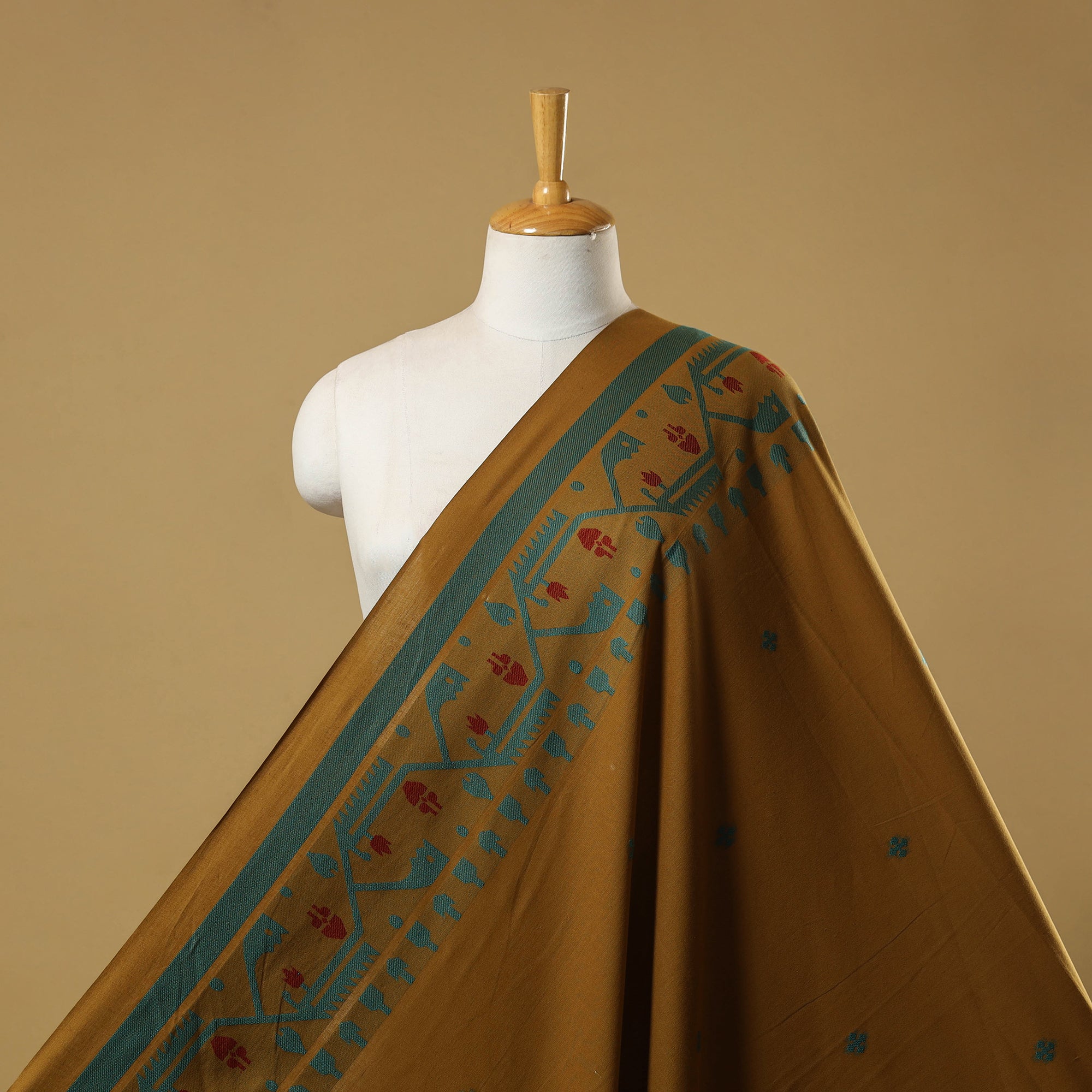 Pure cotton fabric features thread woven buti motifs. It is finished with jamdani border made using the traditional extra weft technique where motifs are woven on the loom, creating an embroidery like effect without surface embellishment. Suitable for kurtas, dresses and everyday ethnic wear pieces.