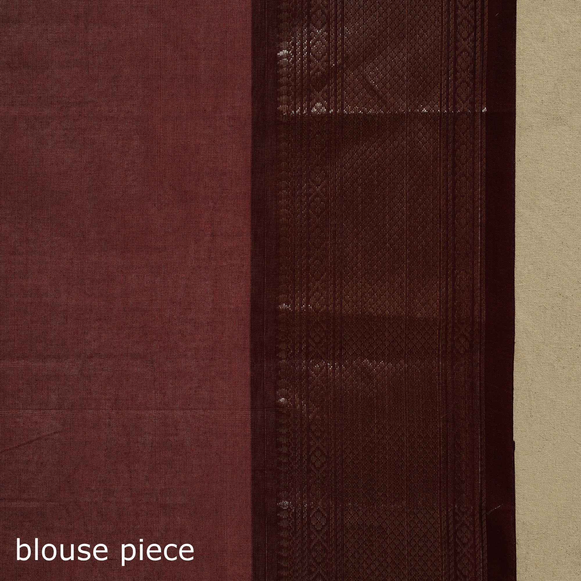 | Material | Maroon kanchipuram cotton saree from Tamil Nadu, a city widely known as the Temple City of India. Also called a Kanjeevaram saree, it features thread buti designs on the body and is especially known for its woven border work, which adds a refined touch to the overall look. Comfortable and easy to carry, it works well for regular wear, workdays, special occasions and wedding functions. Note: This piece carries tiny knots, thread pulls or uneven lines not flaws but fingerprints. Every irregularity is a whisper from the hands that made it. It’s what happens when tradition weaves through time not machines. If you’re looking for perfection, this isn’t it. But if you’re looking for soul you’ve found it. |