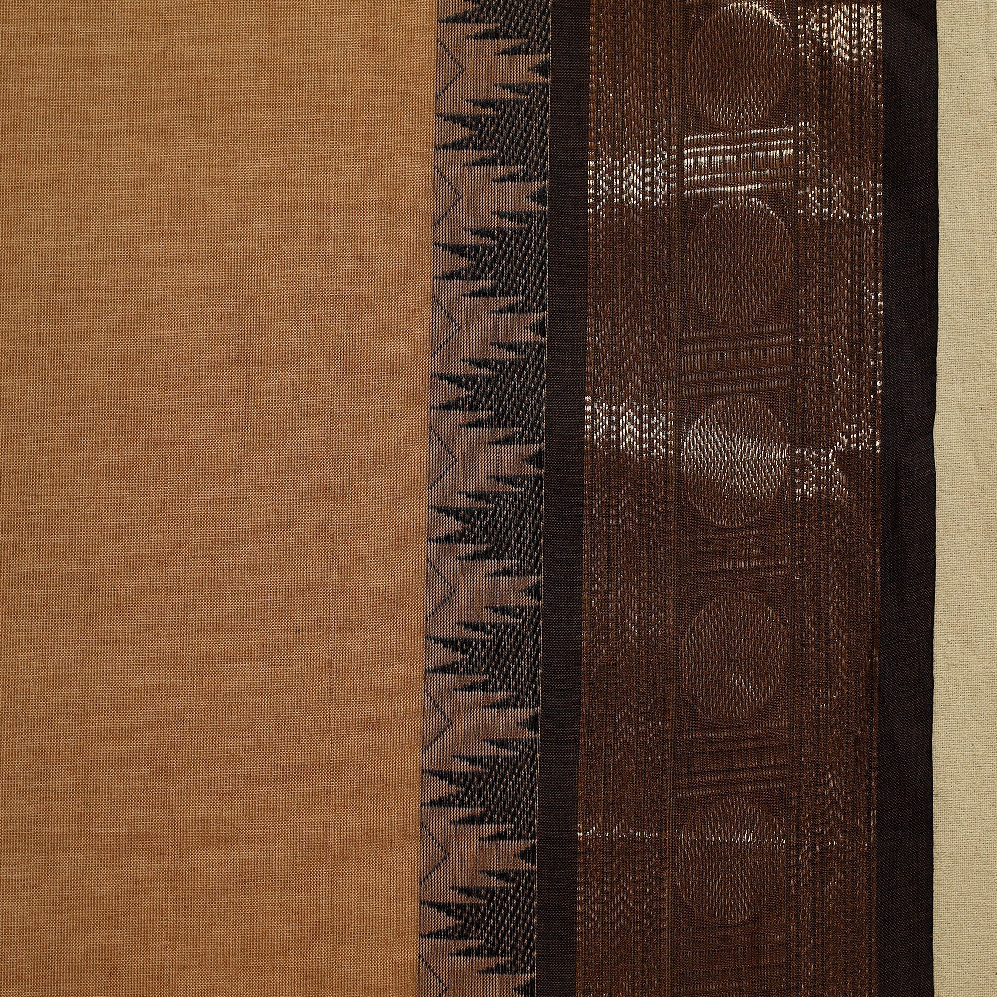 Brown kanchipuram cotton saree from Tamil Nadu, a city widely known as the Temple City of India. Also called a Kanjeevaram saree, it features thread buti designs on the body and is especially known for its woven border work, which adds a refined touch to the overall look. Comfortable and easy to carry, it works well for regular wear, workdays, special occasions and wedding functions.