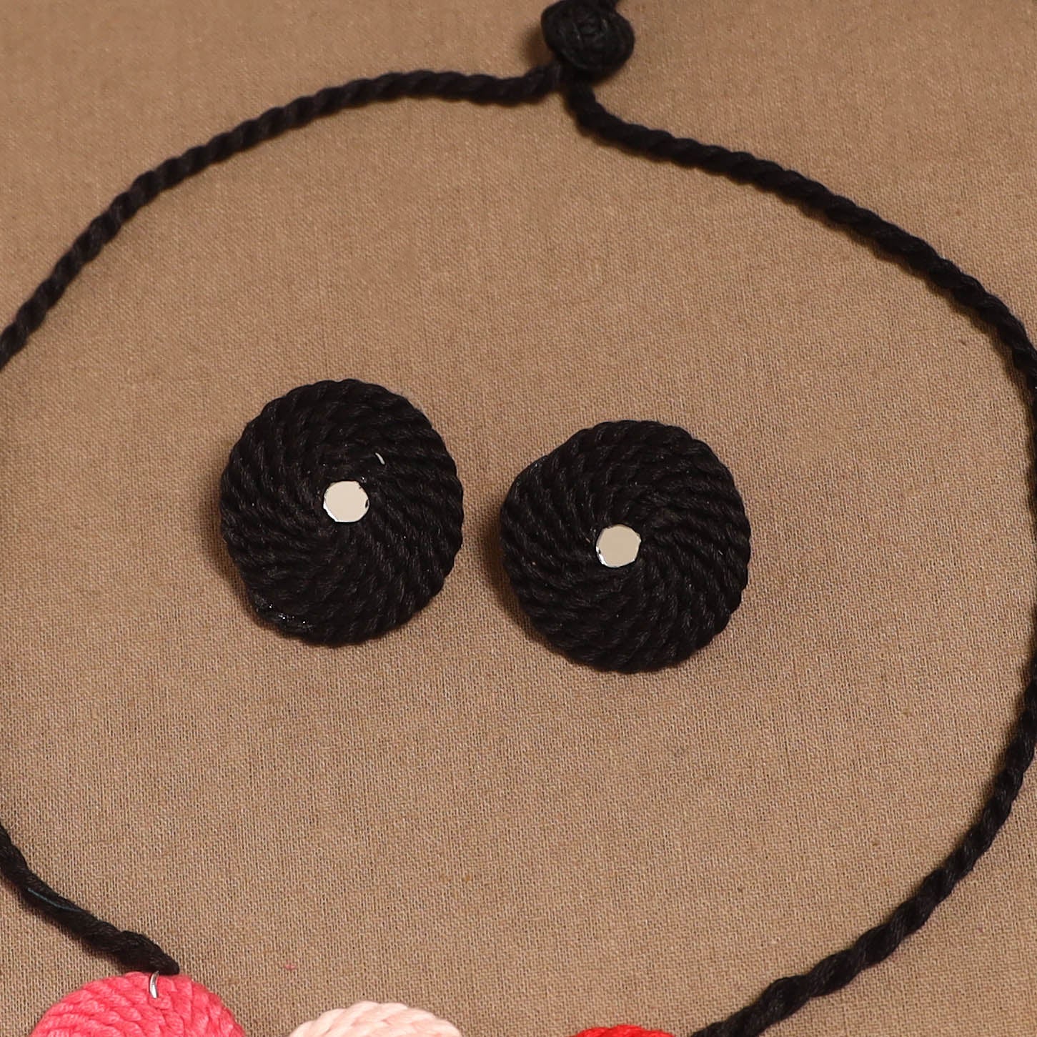 • Thread ghungroo & mirror work necklace set 07 - handcrafted