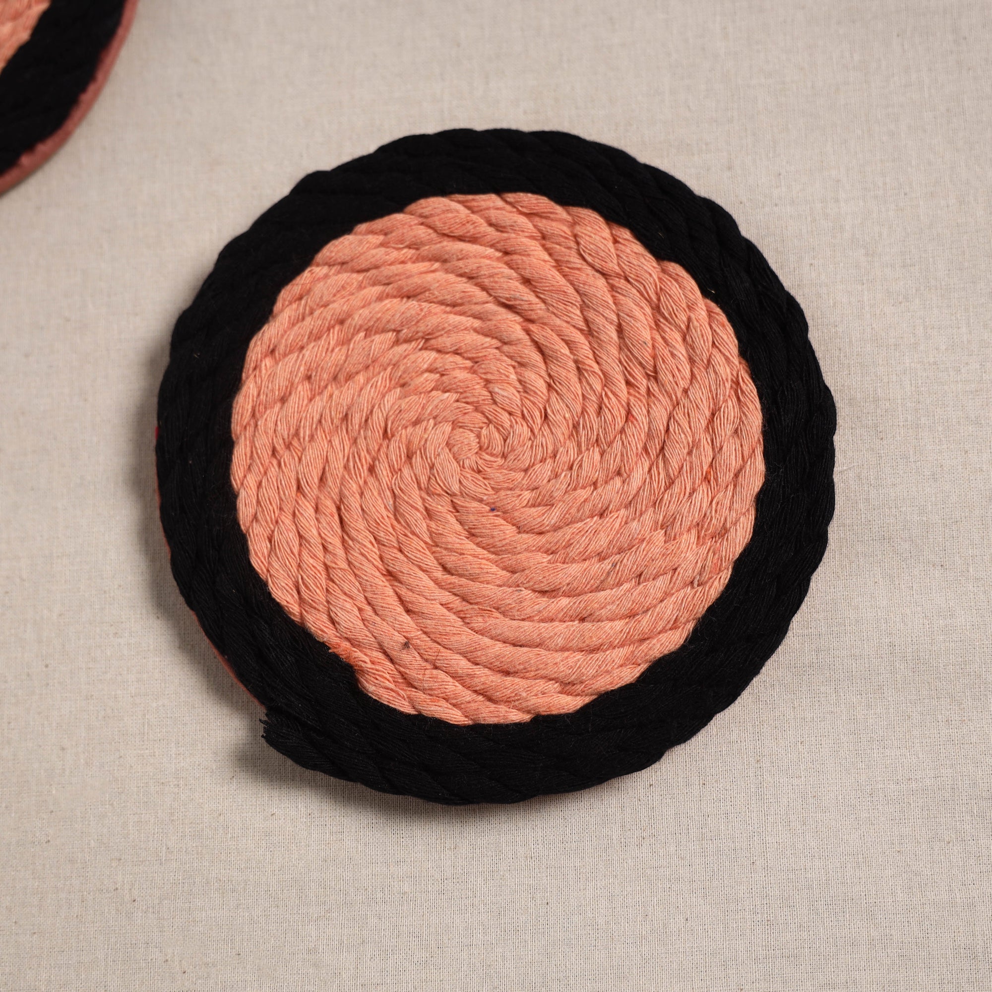 Make your table look stylish with this orange handmade coasters (set of 2), handcrafted by artisans using cotton thread work. Backed with a sturdy base for added support, these coasters are suitable for daily use and help protect table surfaces from heat, spills and stains.