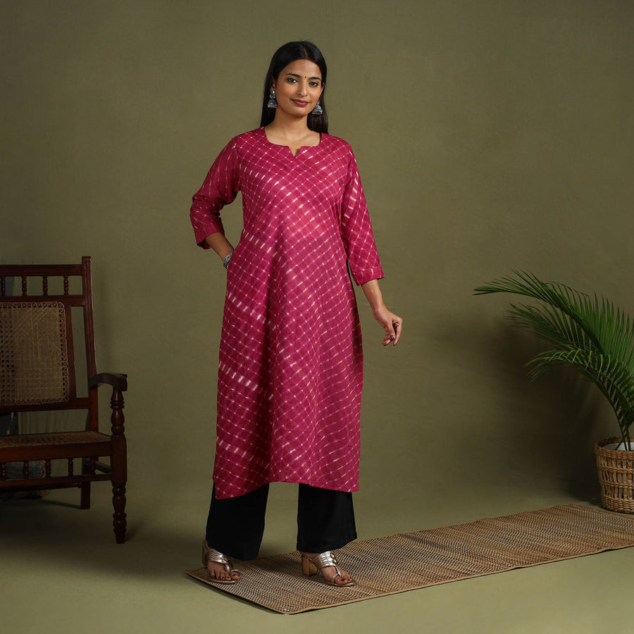 This a-line pink leheriya kurta is a stunning blend of tradition and elegance. Leheriya, a traditional tie-dye technique from Rajasthan, is known for its vibrant, wavy patterns created by skilled artisans. This kurta features a practical side pocket, adding both style and functionality, it a perfect choice for festive and casual occasions.