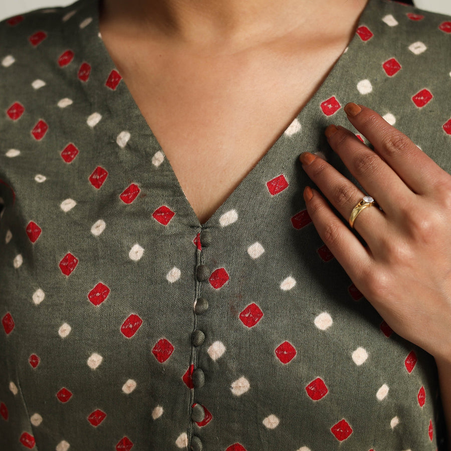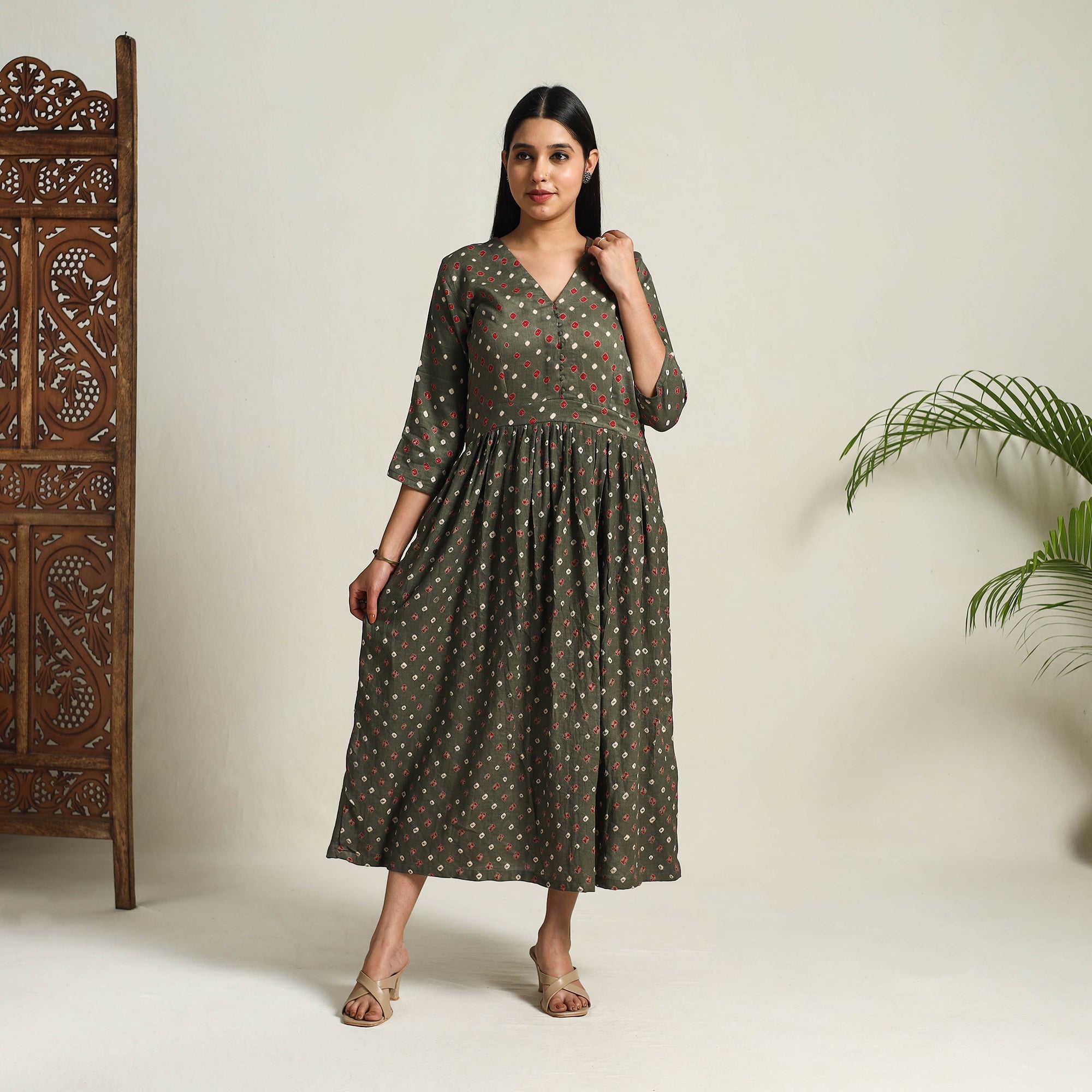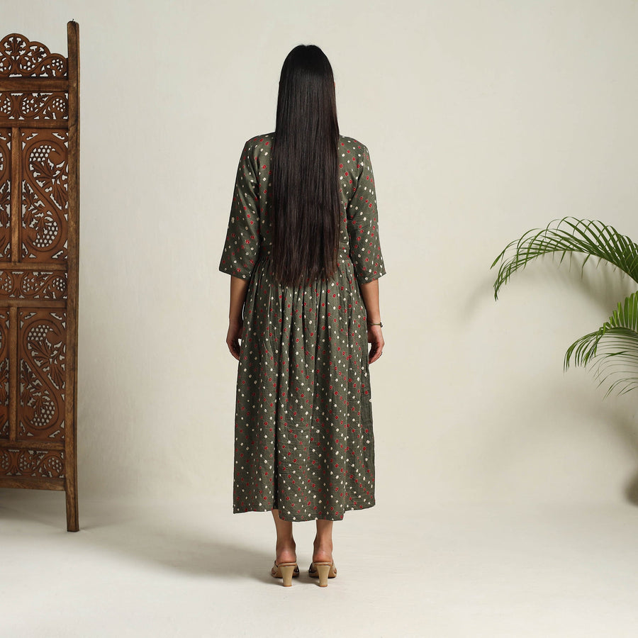 This exquisite grey tie & dye cotton flared bandhani dress is beautifully blends style and comfort. This dress is crafted from soft cotton fabric. The dress also features a convenient one-side pocket, perfect for carrying small essentials. The flared design adds a graceful touch, making it perfect for casual outings or festive occasions.
