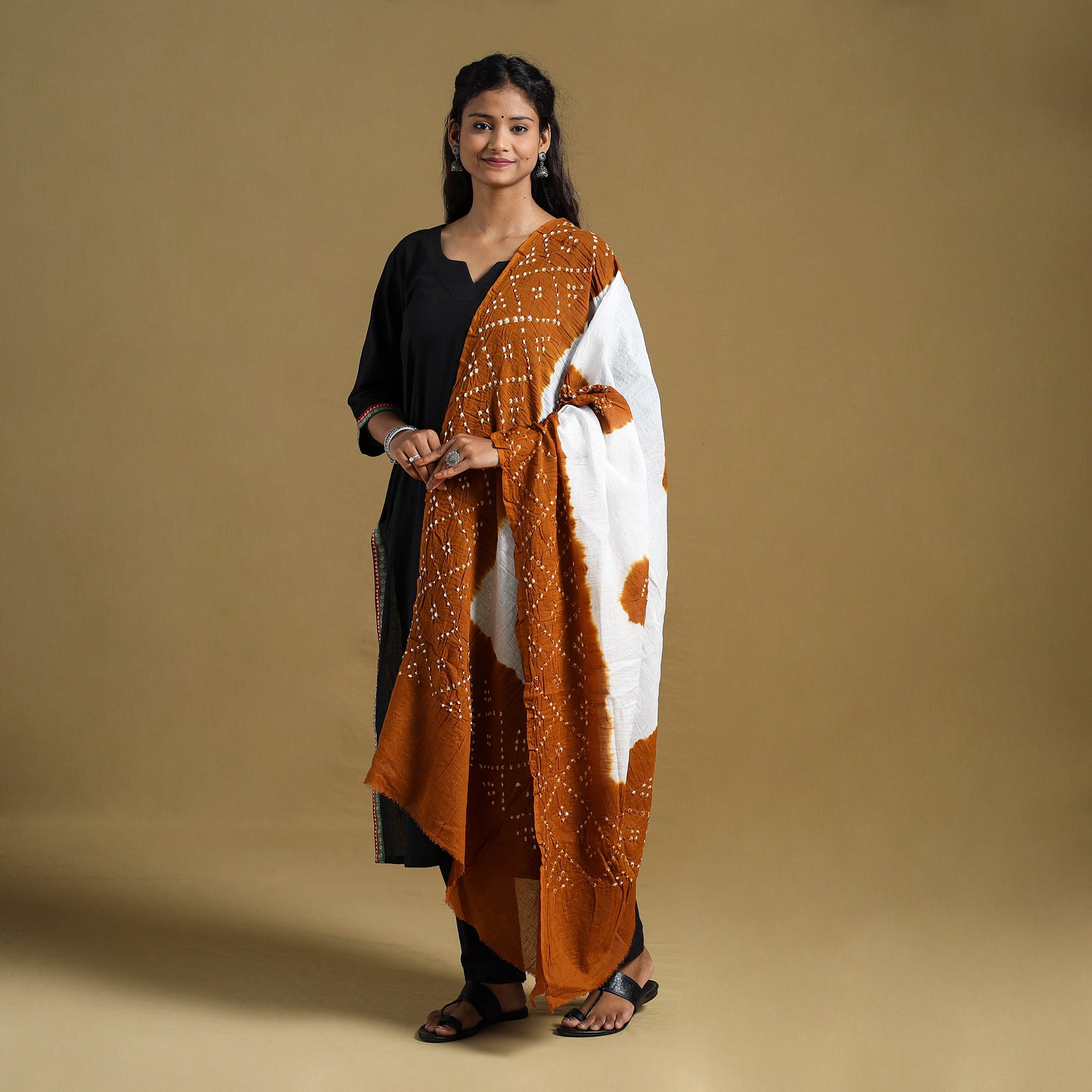 • Brown Tie-Dye Cotton Kutch Bandhani Dupatta