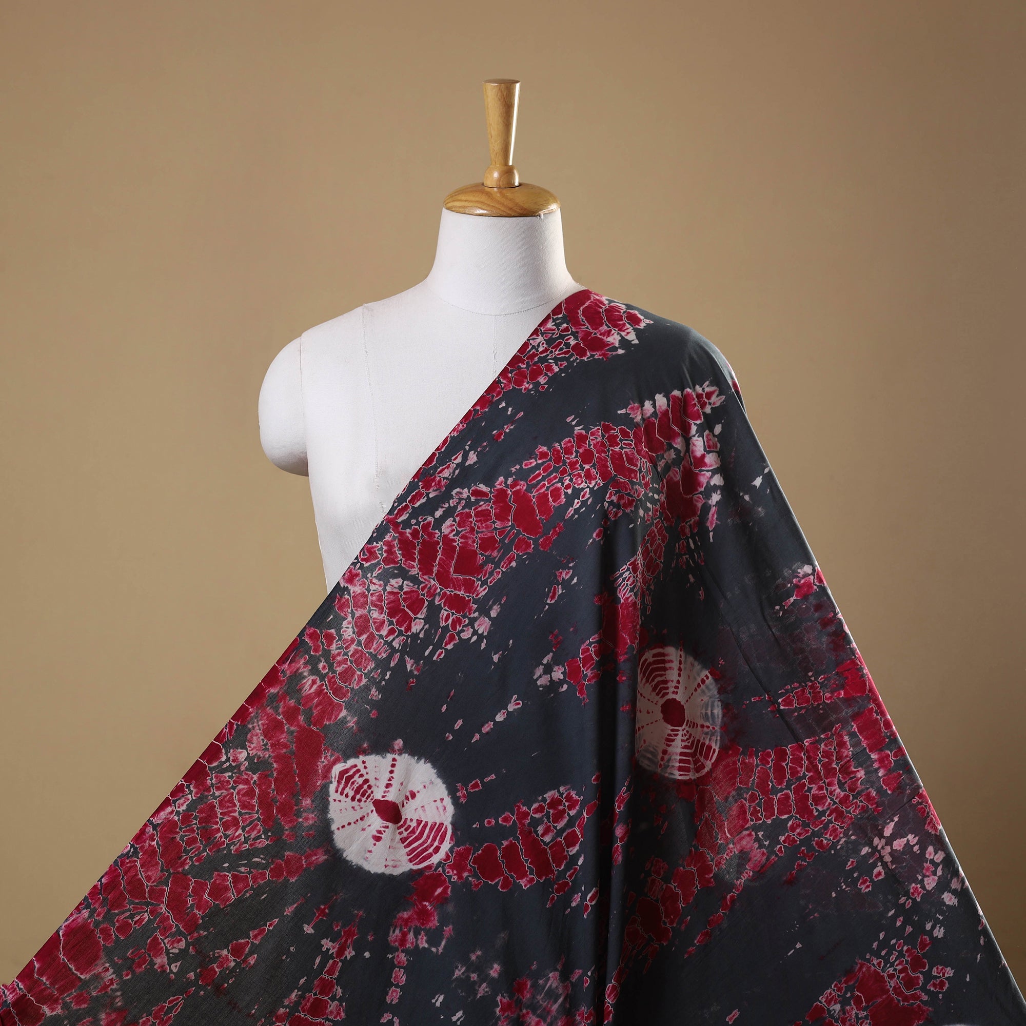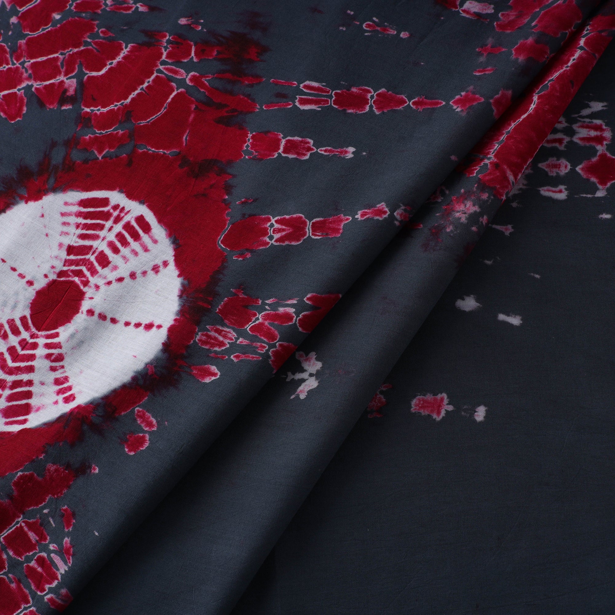This grey shibori fabric is hand-dyed using traditional tie-dye techniques, where the material is carefully bound with threads or clamps to form intricate patterns. Made from soft, breathable cotton, it’s perfect for creating stylish kurtas, dresses, scarves, or elegant home décor accents.