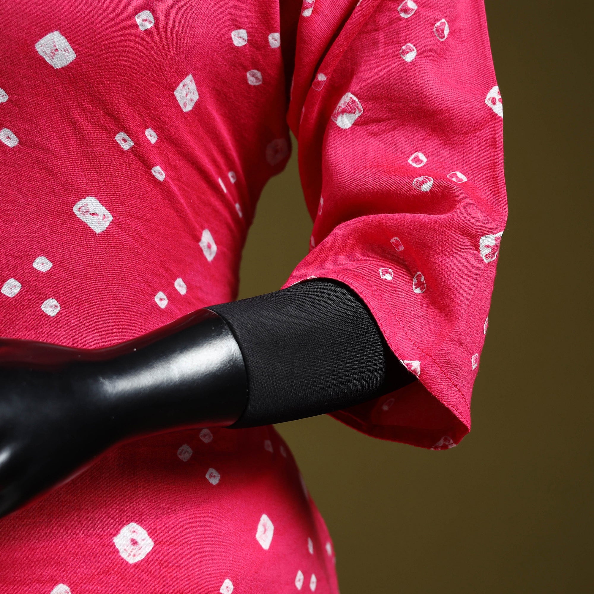 This pink bandhani tie-dye cotton straight kurta blends traditional charm with everyday comfort. Made using the bandhani technique, where parts of the fabric are tied and dyed to create unique dotted patterns. Crafted from soft, breathable cotton and designed with a convenient side pocket, it’s perfect for effortless style and all-day comfort.