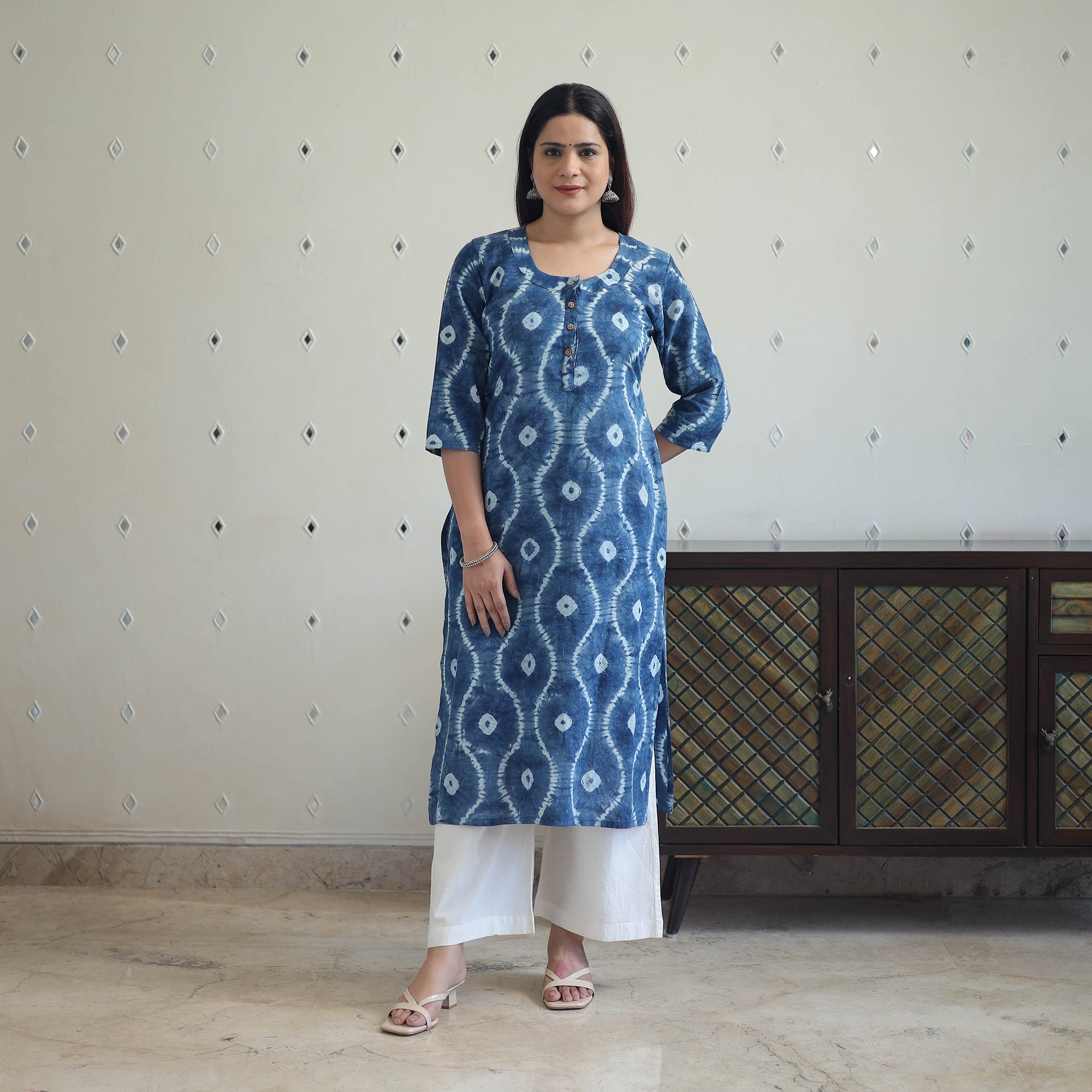 Embrace elegance with this blue tie & dye cotton straight shibori kurta with one side pocket. Featuring a unique pattern created using traditional techniques, this kurta combines comfort with artistic flair. Perfect for all-day wear making it ideal for both casual and semi-formal occasions.