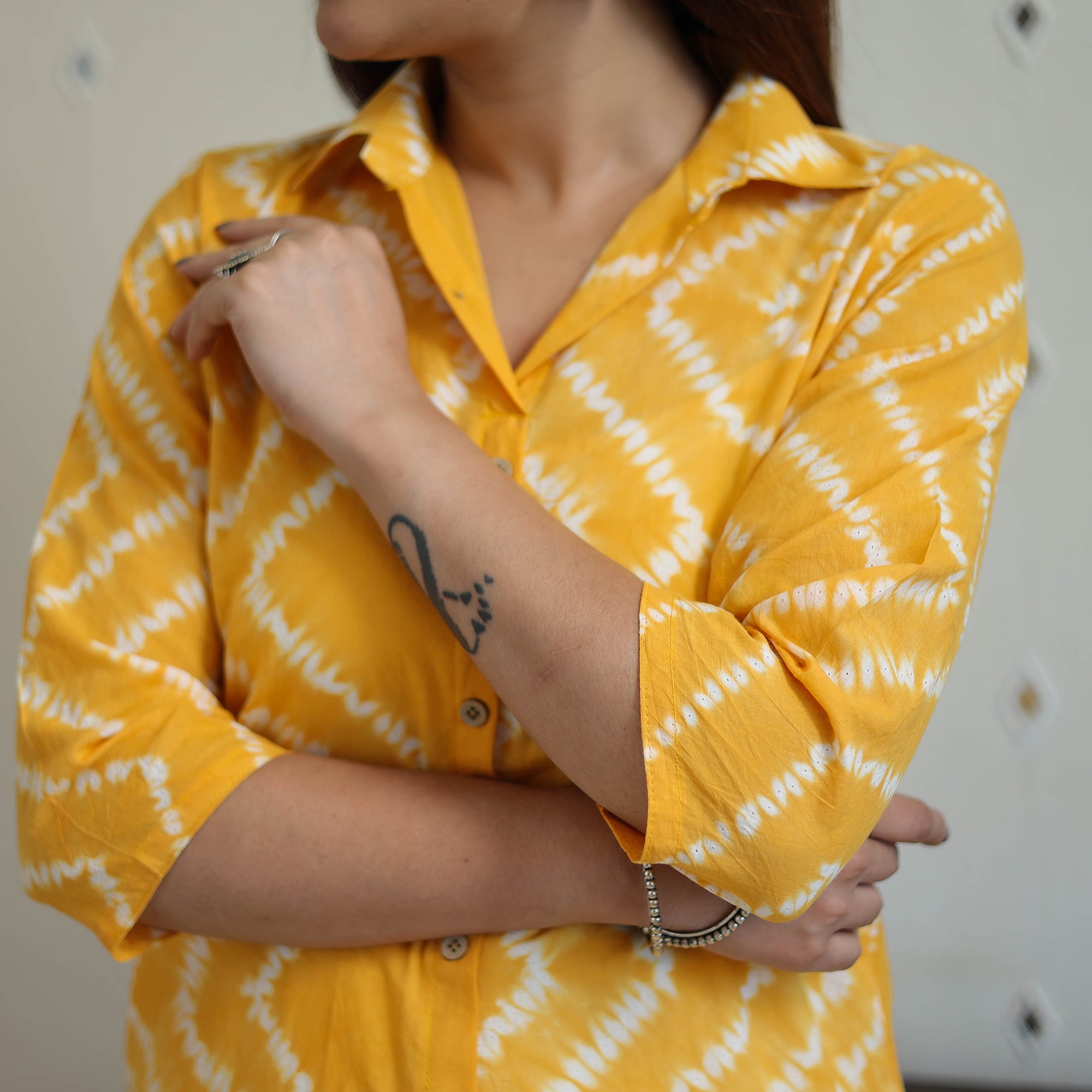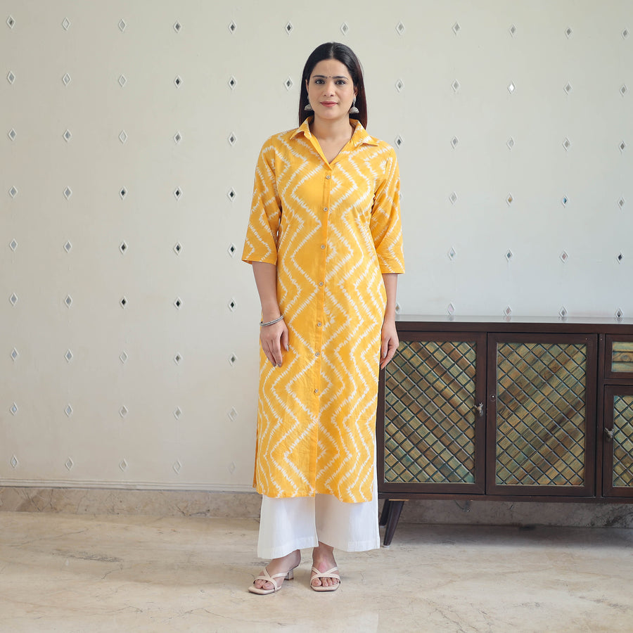 Embrace elegance with this yellow tie & dye cotton straight shibori kurta with one side pocket. Featuring a unique pattern created using traditional techniques, this kurta combines comfort with artistic flair. Perfect for all-day wear making it ideal for both casual and semi-formal occasions.