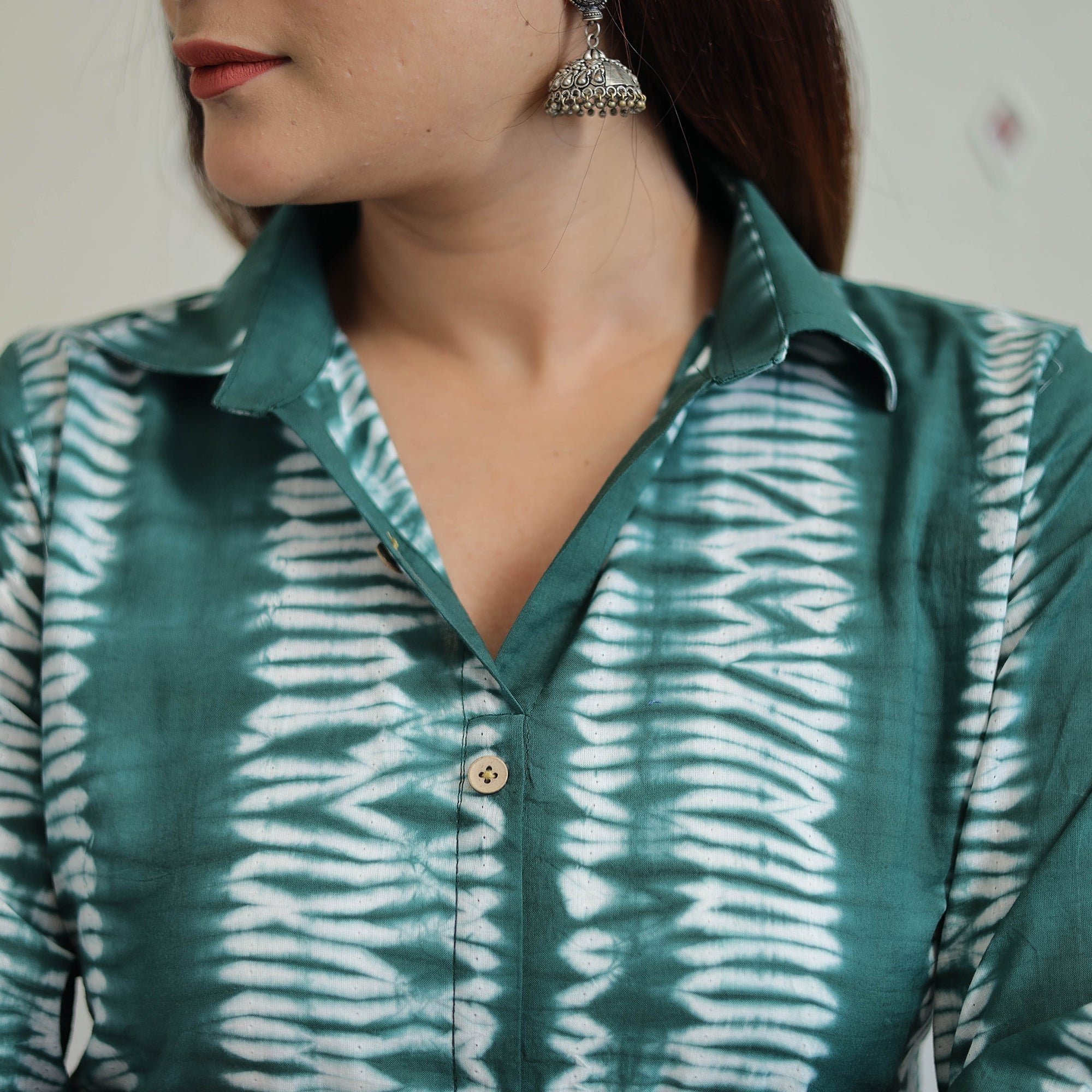Embrace elegance with this green tie & dye cotton straight shibori kurta with one side pocket. Featuring a unique pattern created using traditional techniques, this kurta combines comfort with artistic flair. Perfect for all-day wear making it ideal for both casual and semi-formal occasions.