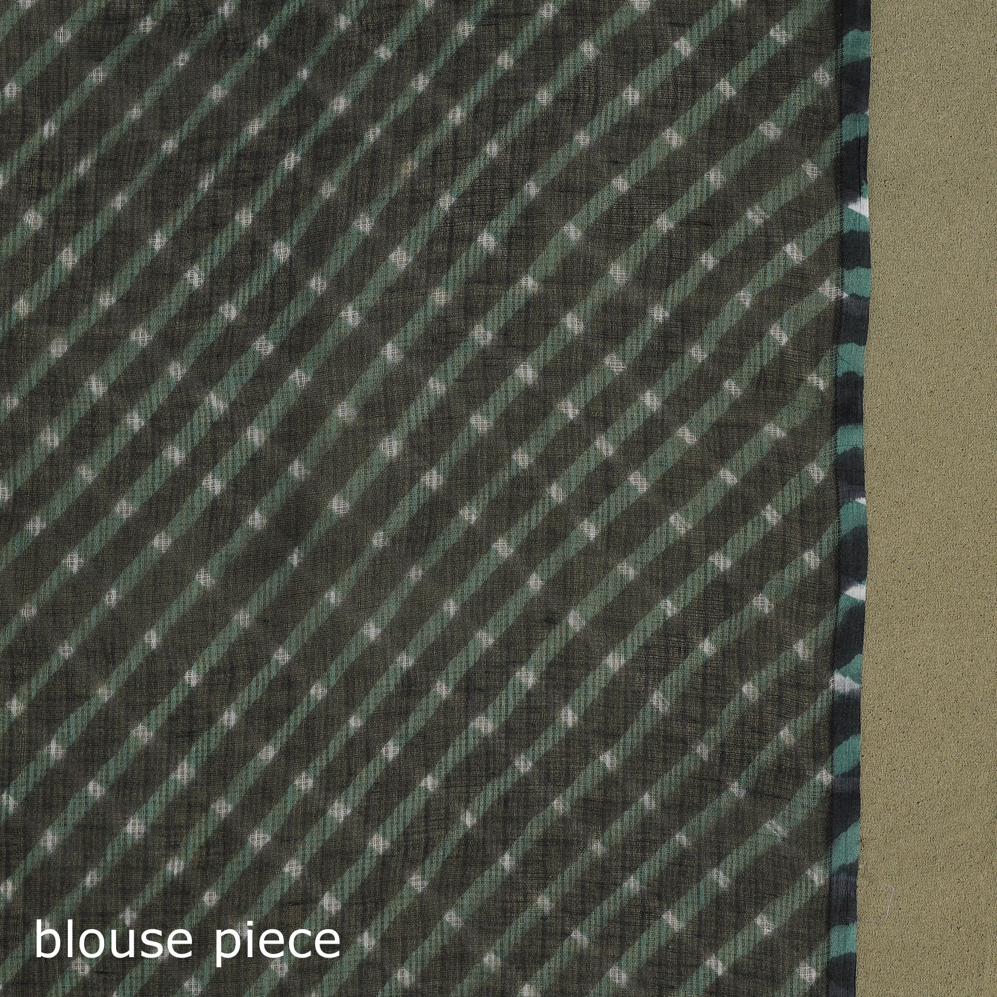 Wrap yourself in tradition with this black tie-dye kota doria cotton leheriya saree, crafted using Rajasthan’s iconic tie-dye technique perfected by the master artisan family of Badshah Miyan. The lightweight and breathable kota doria fabric a blend of strong cotton and lustrous silk yarns, offers an airy graceful drape. Its vibrant wavy patterns, dyed through a meticulous traditional process, make it perfect for festive celebrations, cultural events, or elegant daily wear.