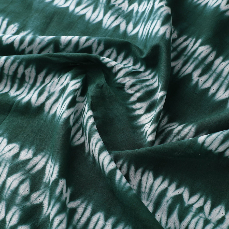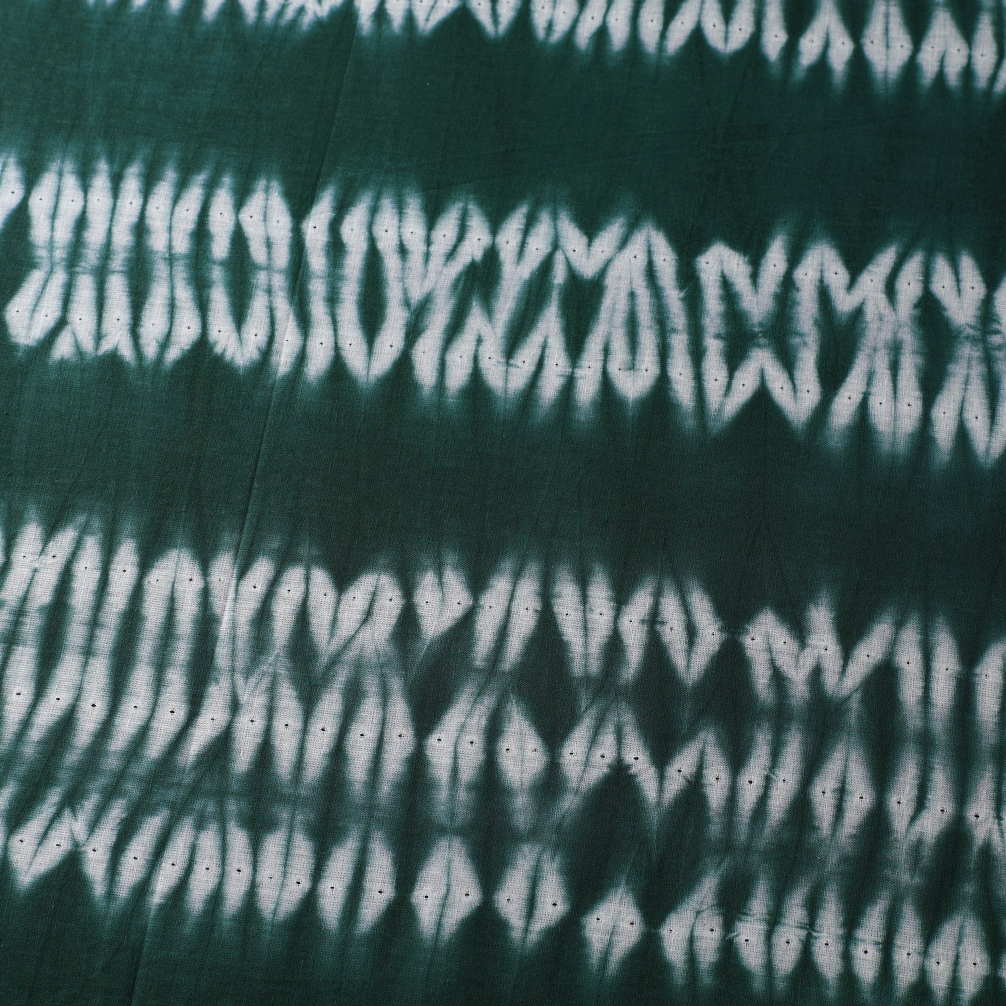 Fine quality green tie & dye pure cotton shibori fabric. This fabric is hand dyed using shibori tie and dye technique in which the fabric is tied using clamp or stitches in the required design and the pattern is dyed. This cotton fabric is soft, eco-friendly.