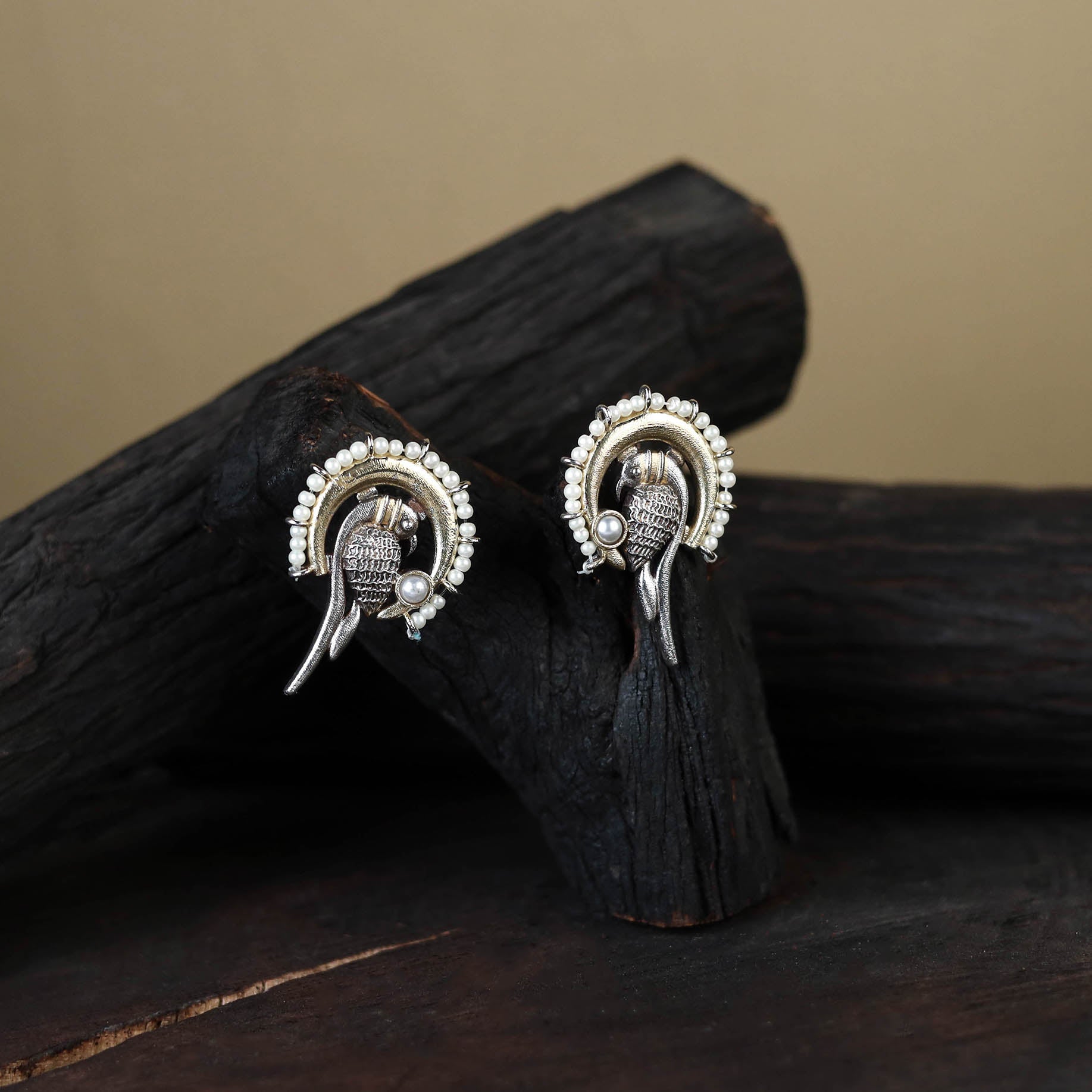 These white german silver-plated handcrafted stud earrings feature a timeless blend of oxidised metal, pearls, stones, and fine detailing. Elegant in silver tones, they effortlessly complement ethnic outfits as well as casual western looks, making them eye-catching, versatile, and perfect for festivals, weddings, or any special occasion. A thoughtful gift for your loved ones, adding a graceful touch of tradition to every moment.