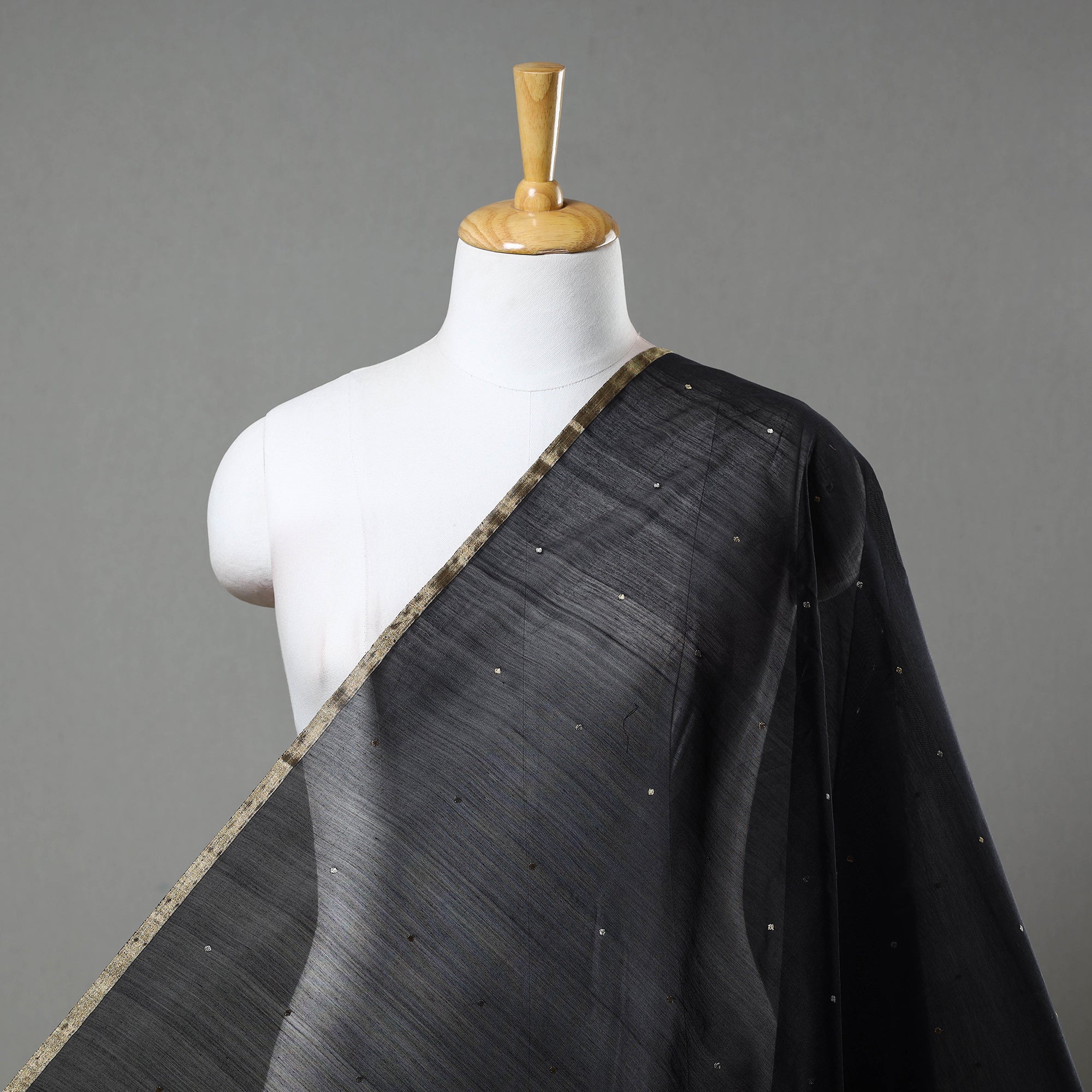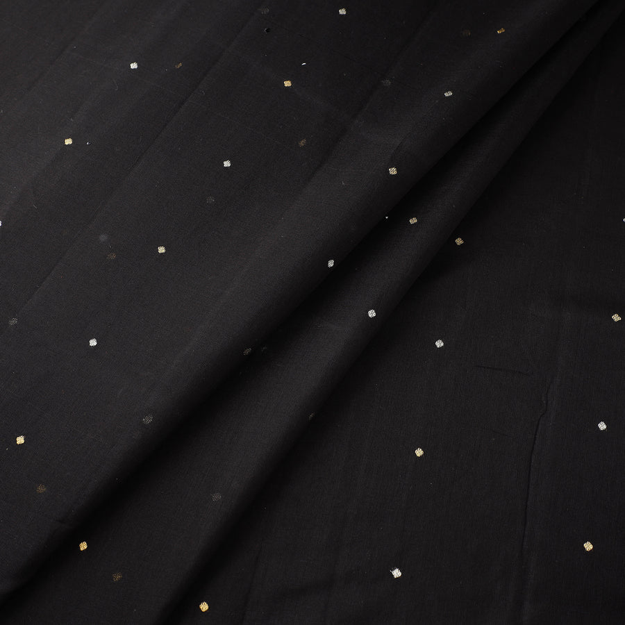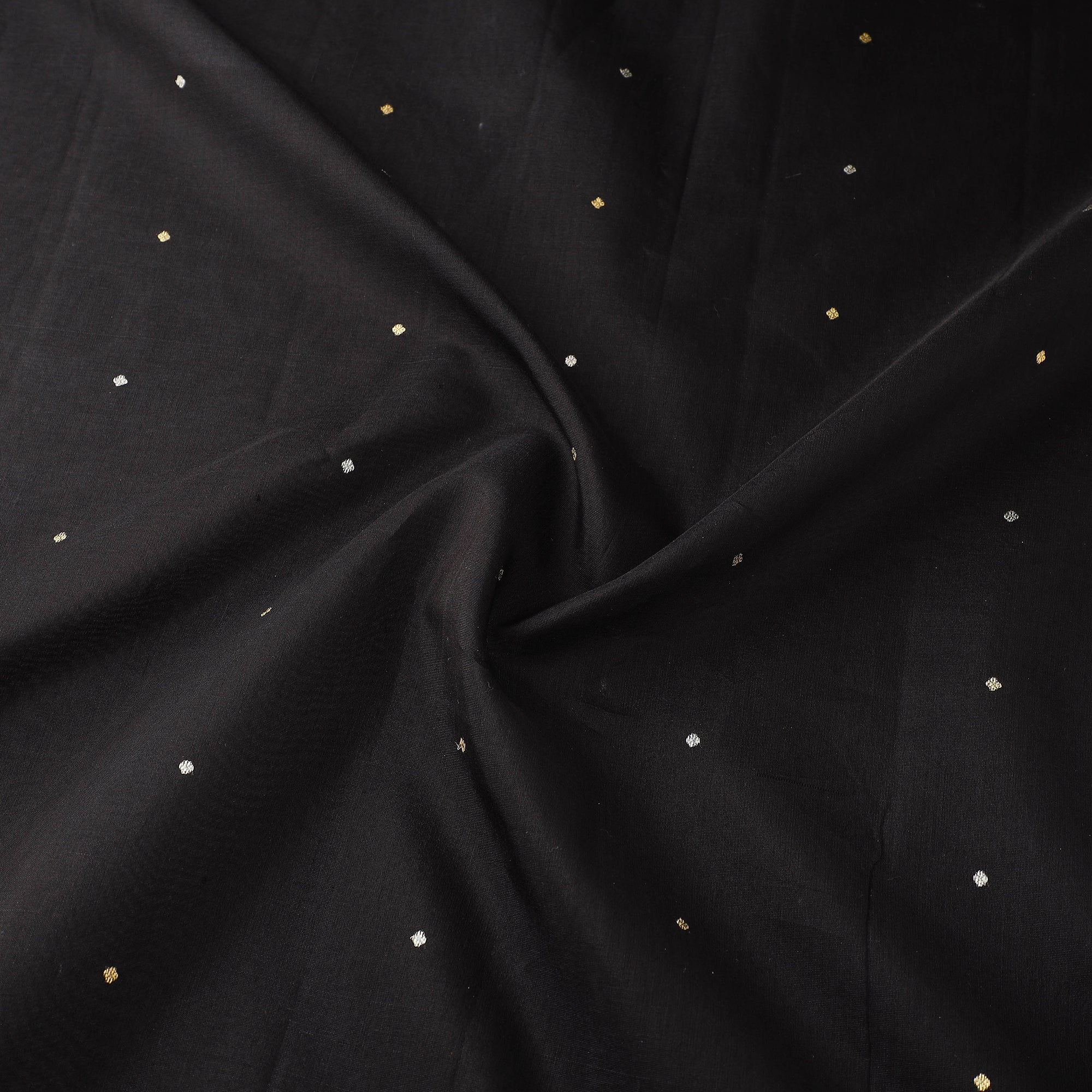 Experience the elegance of black traditional handloom chanderi silk cotton fabric, crafted by master artisan Rauph Khan in Chanderi, Madhya Pradesh. Our Chanderi silk cotton zari buti fabric blends the finest silk and cotton, offering a gossamer look and an amazing feel. Perfect for traditional and contemporary designs, this fabric ensures both comfort and style.