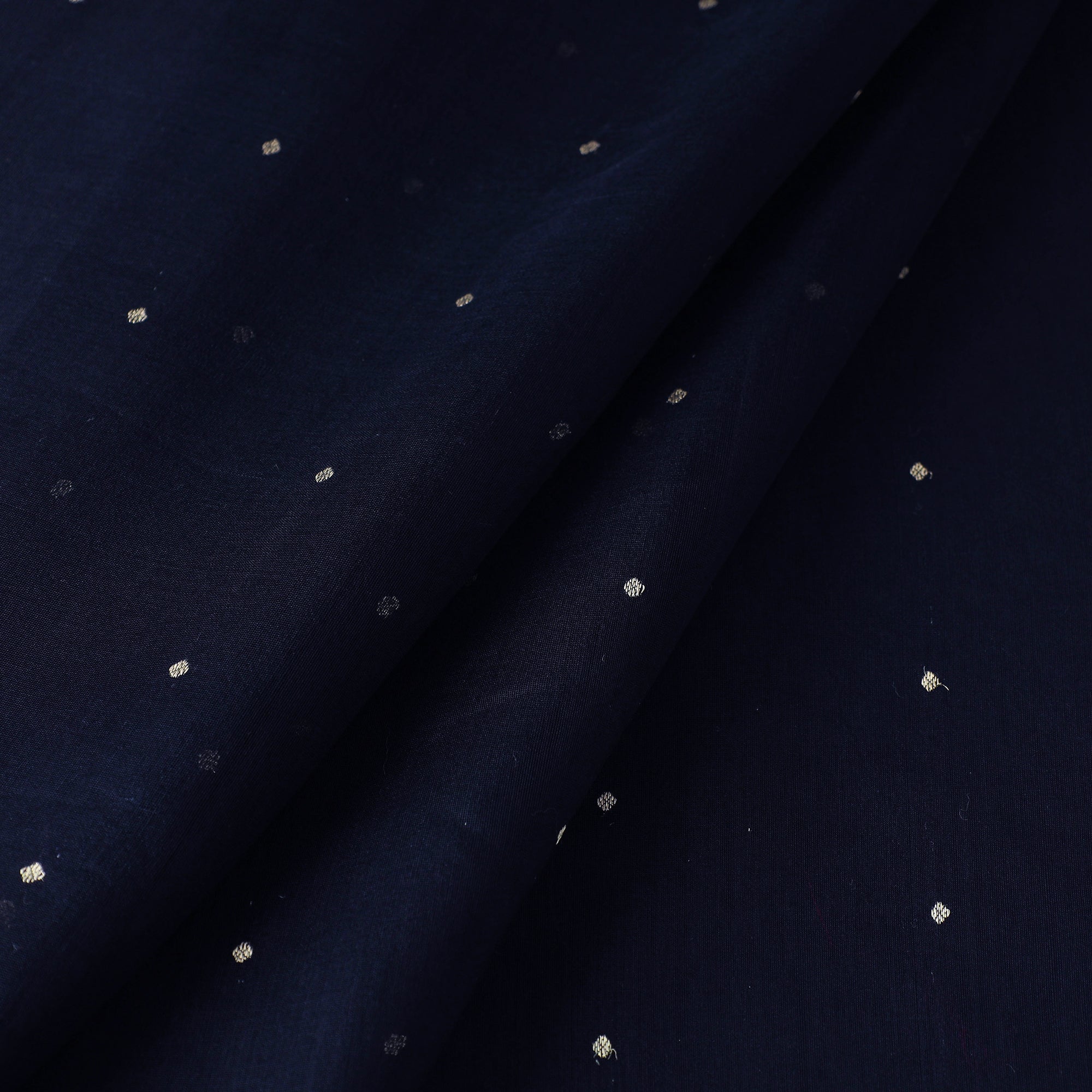 This zari buti blue chanderi fabric is handwoven in Madhya Pradesh by master artisan Rauph Khan. Known for its gossamer look and amazing feel, the chanderi weave fabric blends silk and cotton to offer everyday elegance. It is ideal for creating kurtas, dresses, cushion covers, curtains, dupattas, and other beautiful handmade pieces.