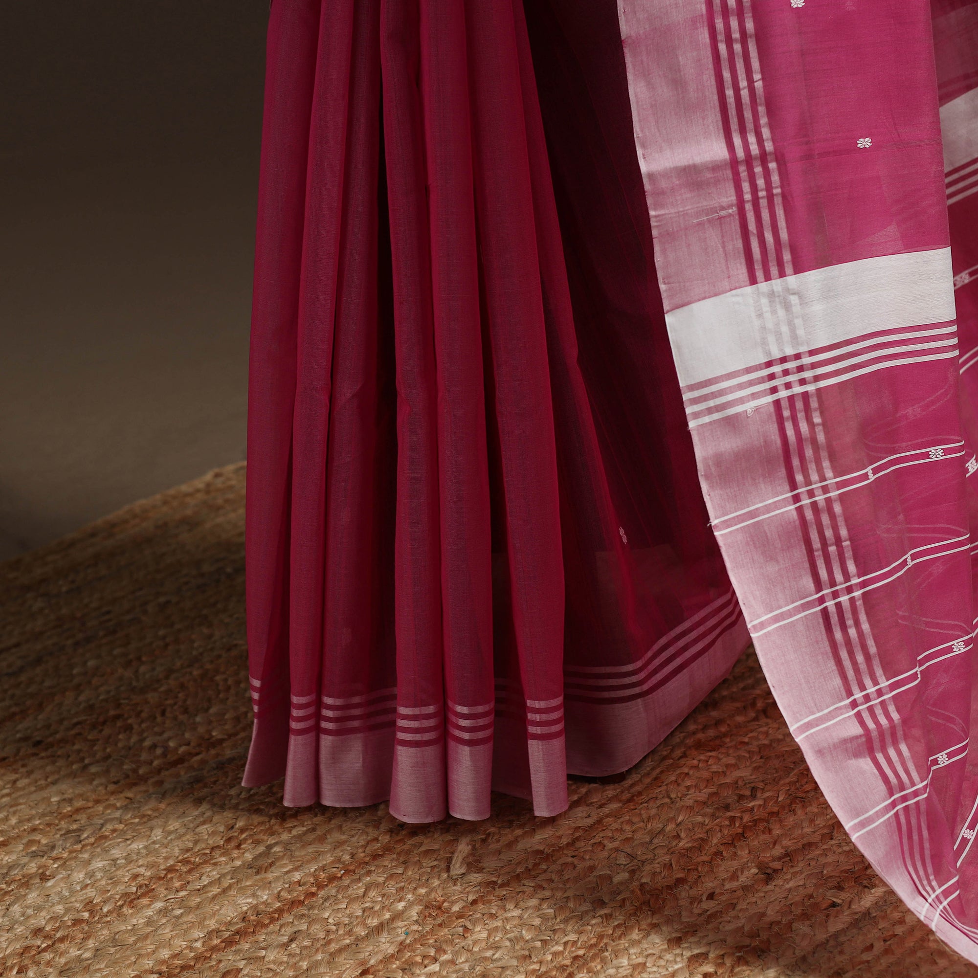 Embrace the elegance of our pink traditional handloom chanderi silk cotton saree, handwoven by artisans from Chanderi, Madhya Pradesh. The buttis or motifs on chanderi blend are primarily hand woven on handloom, with the use of needles. Separate needles are used to create different motifs. Chanderi silks are known for its gossamer looks and amazing feel. This saree is perfect for special occasions or elegant gatherings.