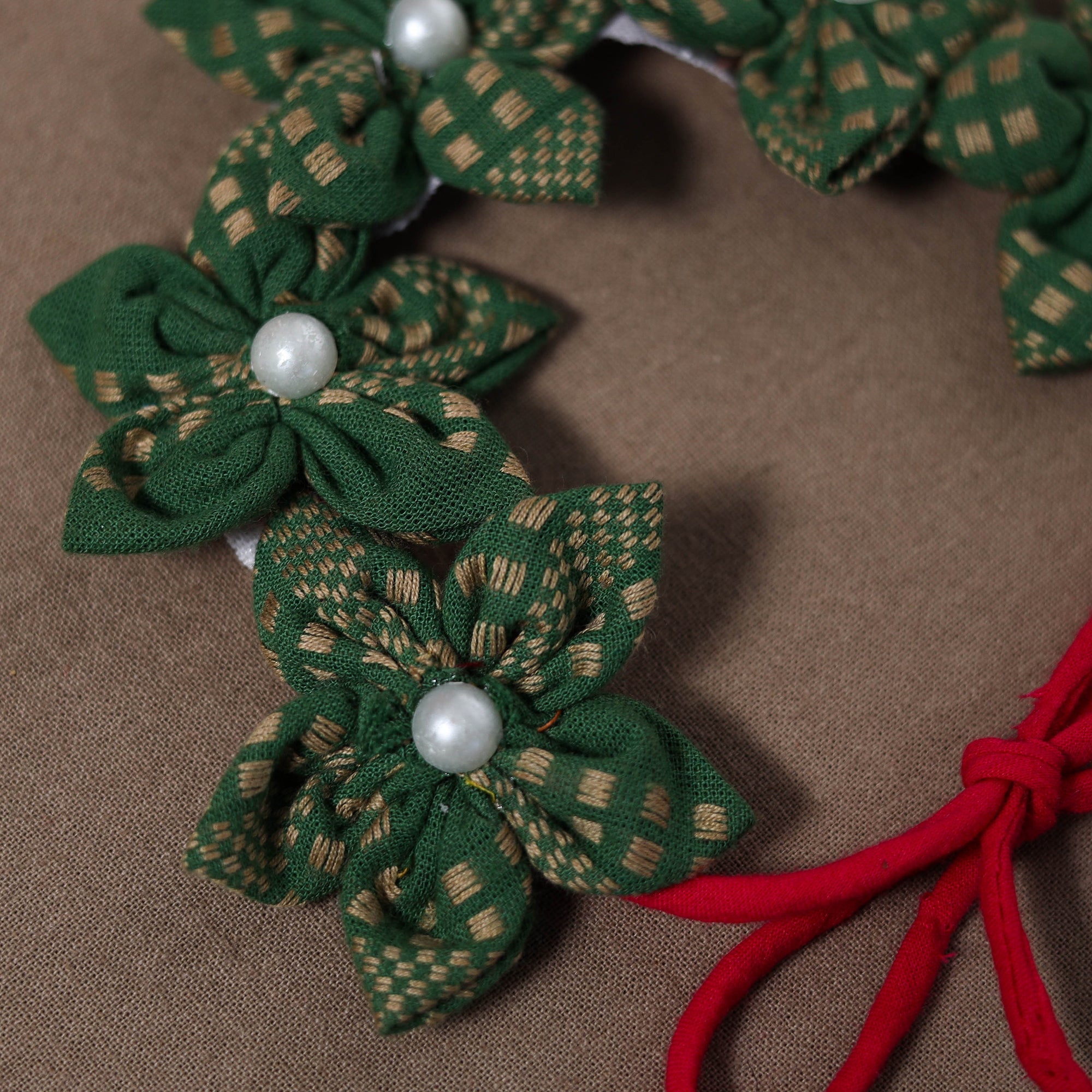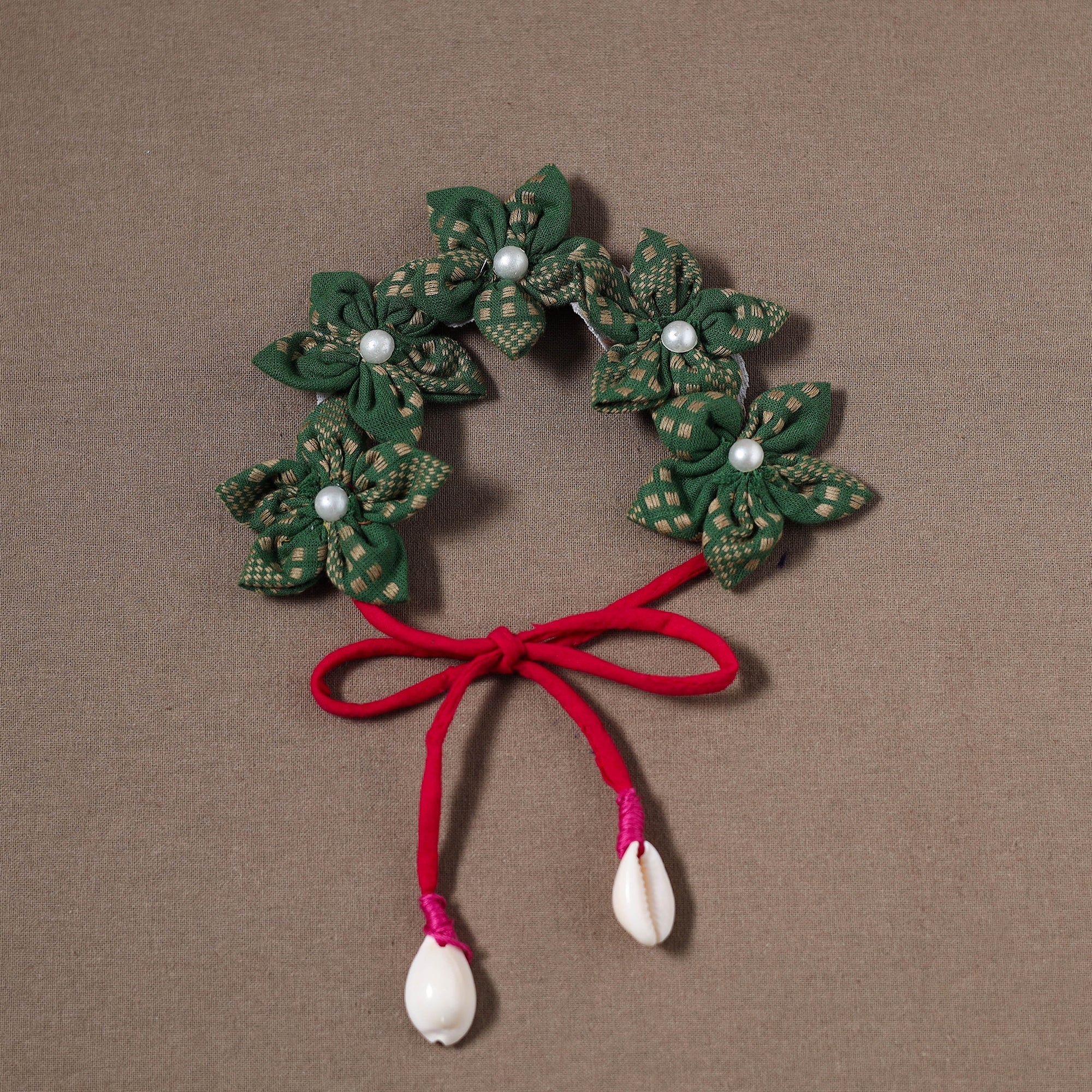 Add charm to your hairstyle with this traditional handmade fabart gajra, featuring fabric flowers, pearls, and shells for a unique look. Crafted with care by skilled artisans, it offers a lightweight and secure fit. Perfect for weddings festive occasions, or adding a traditional touch to everyday styles.