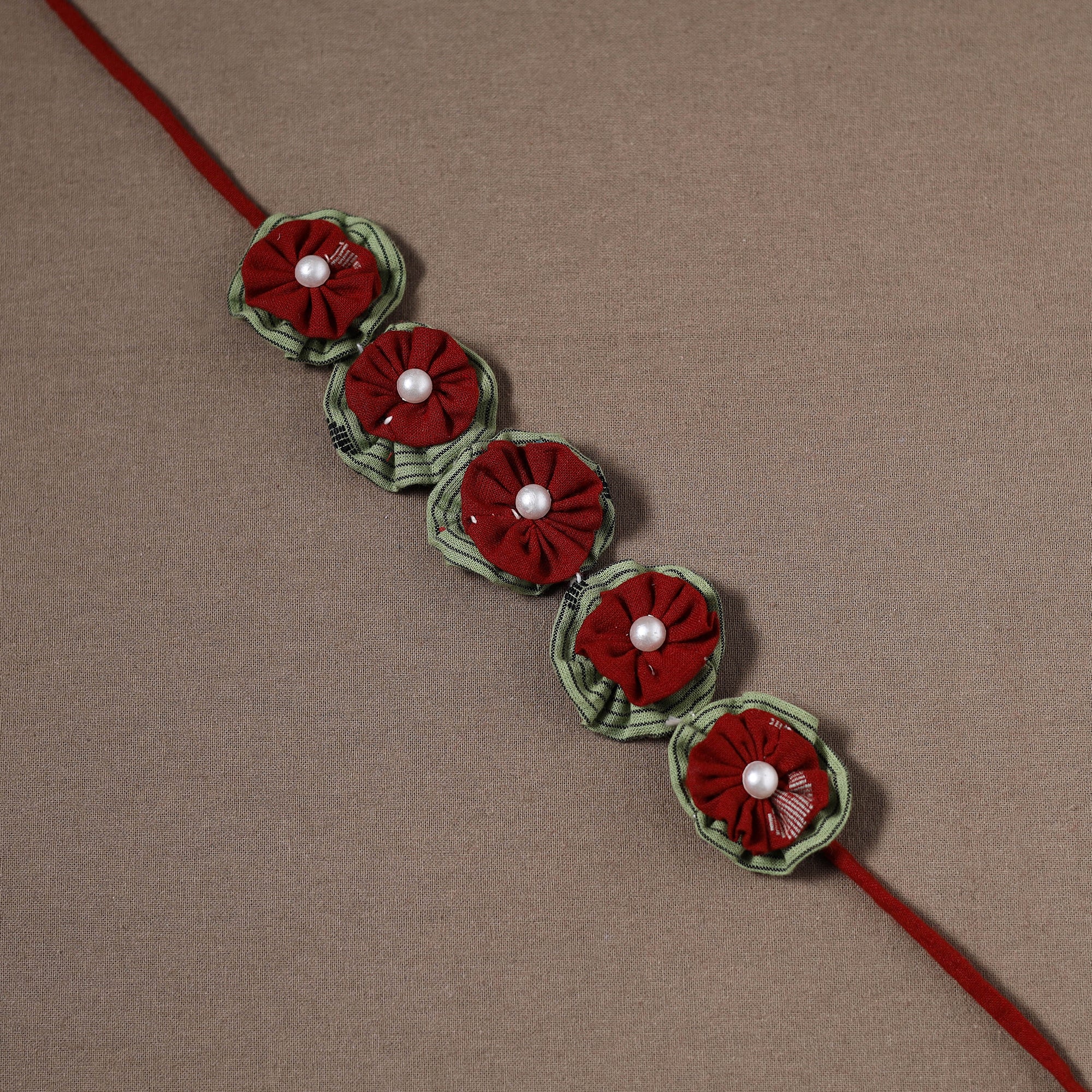Add charm to your hairstyle with this traditional handmade fabart gajra, featuring fabric flowers, pearls, and shells for a unique look. Crafted with care by skilled artisans, it offers a lightweight and secure fit. Perfect for weddings festive occasions, or adding a traditional touch to everyday styles.
