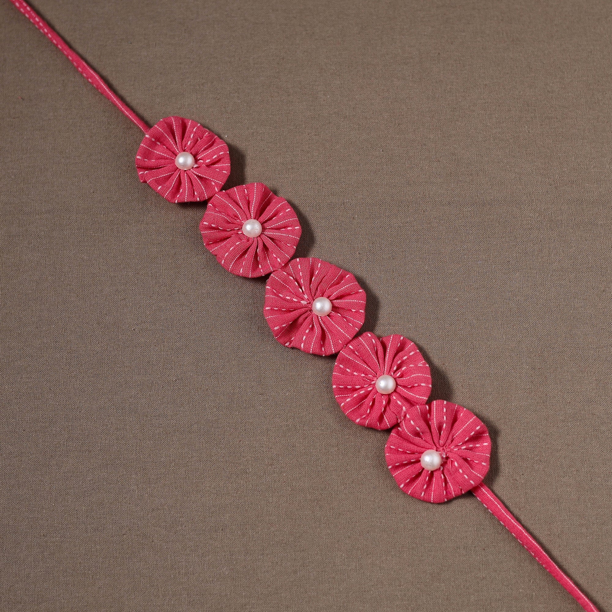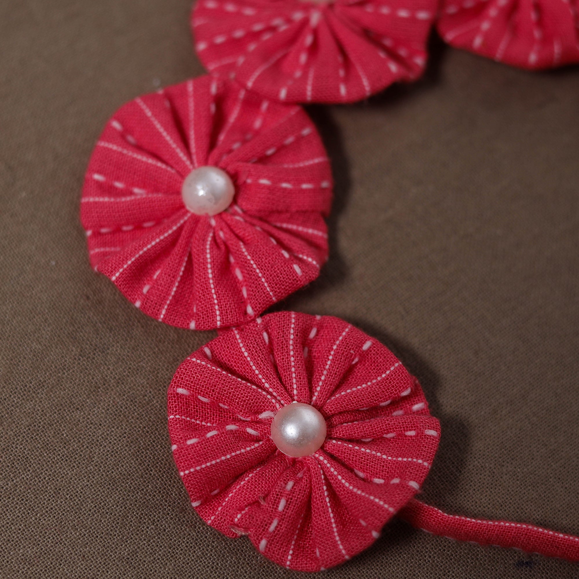 Add charm to your hairstyle with this traditional handmade fabart gajra, featuring fabric flowers, pearls, and shells for a unique look. Crafted with care by skilled artisans, it offers a lightweight and secure fit. Perfect for weddings festive occasions, or adding a traditional touch to everyday styles.