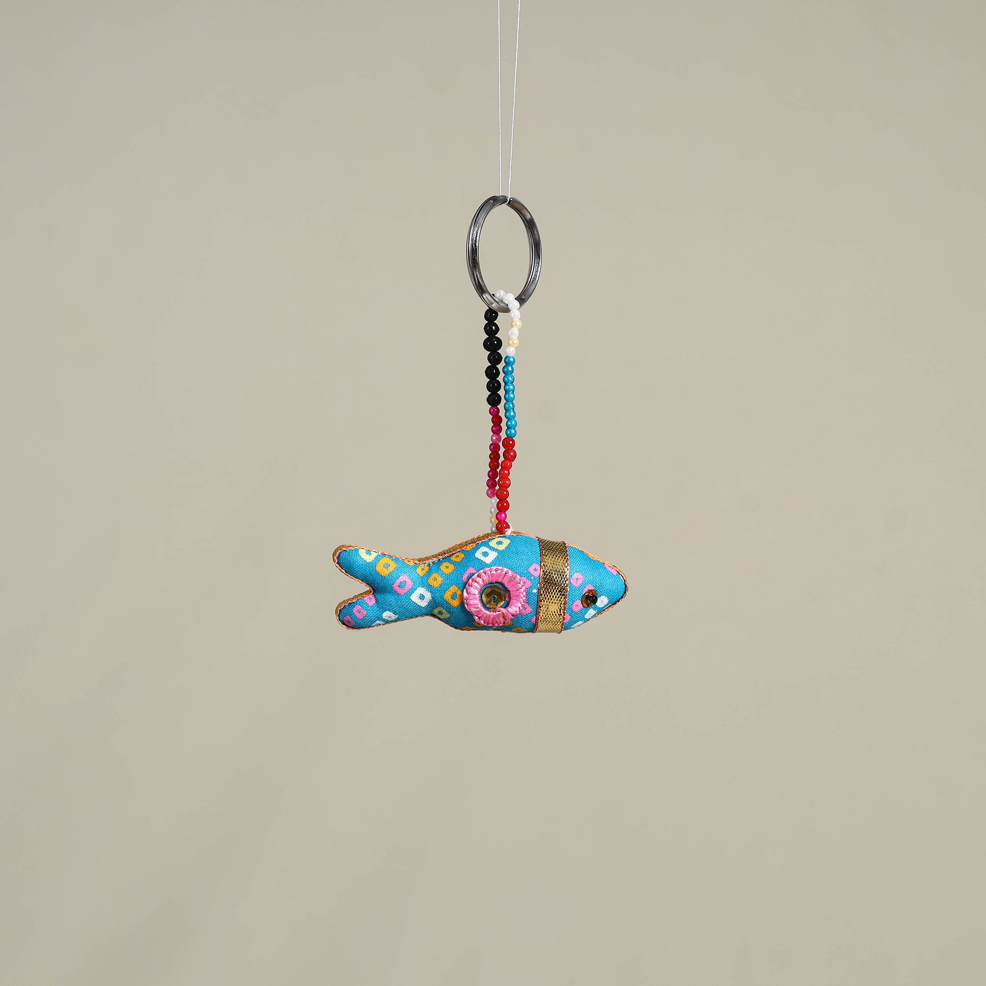 Add a touch of tradition and charm to your everyday essentials with this handcrafted blue keychain made by skilled artisans. Crafted from vibrant fabrics, gota patti, sequins, and colorful beads, each piece is thoughtfully designed to add joy, colour, and a festive vibe to your keys, bags, or even small pouches, making it a perfect blend of function and decor.