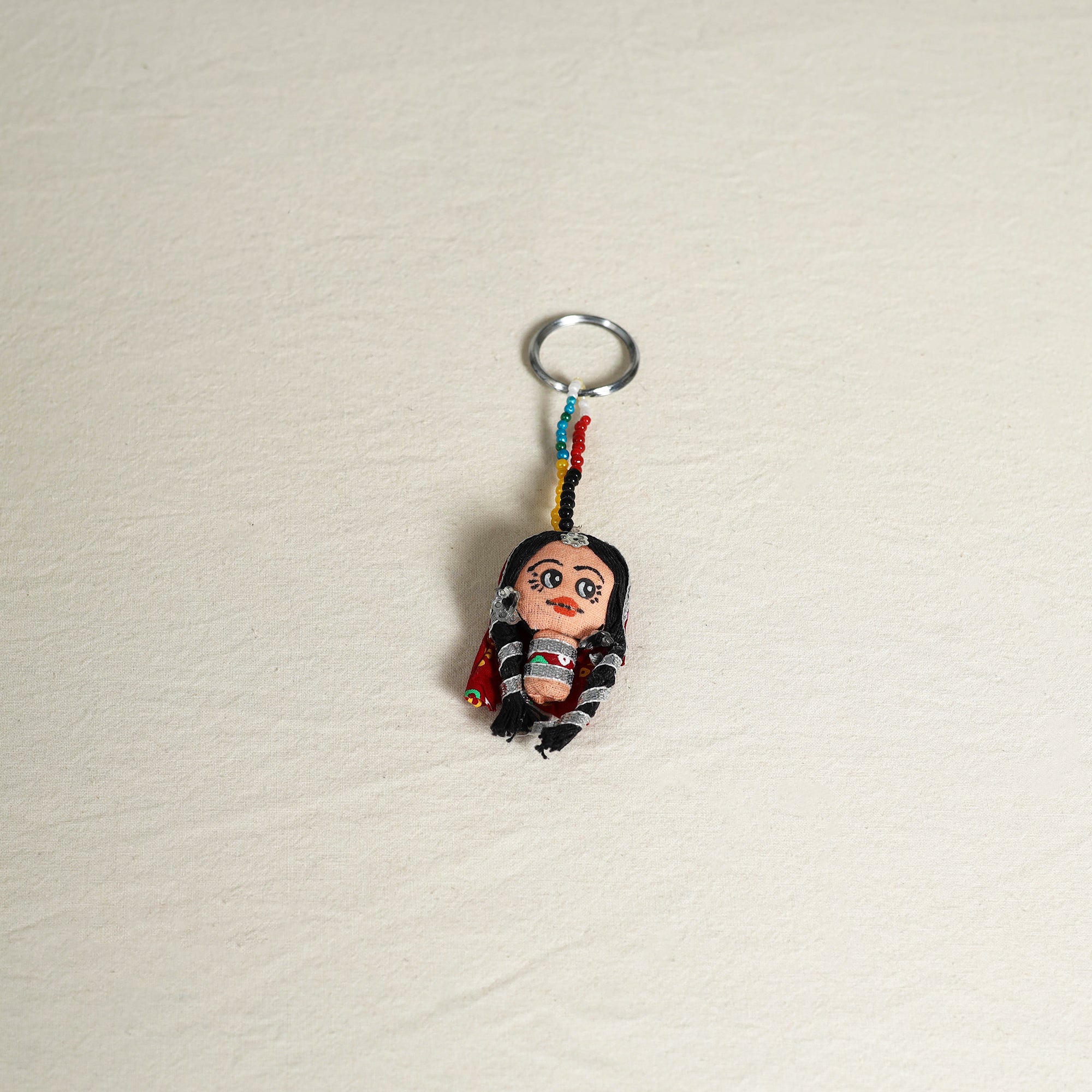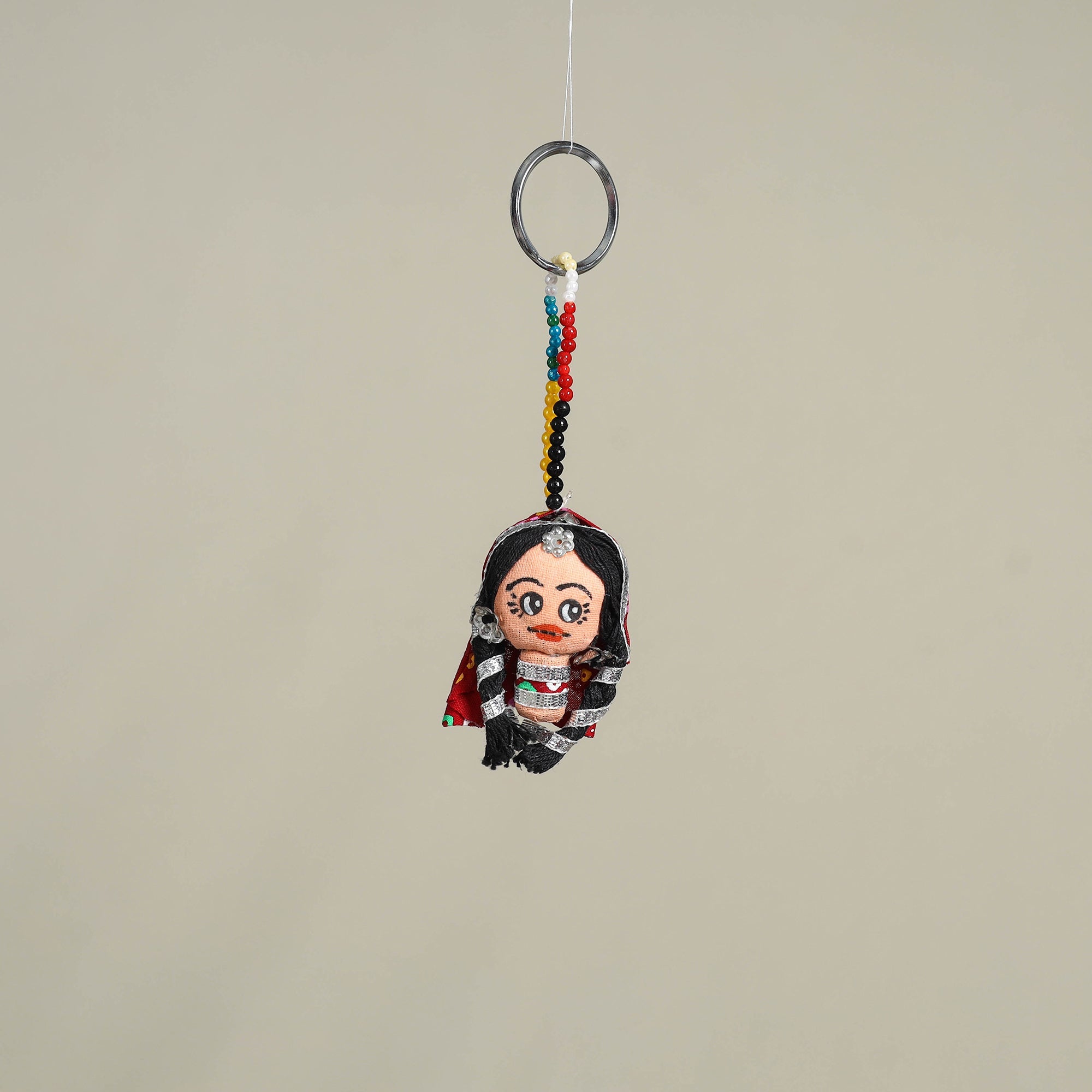 Add a touch of tradition and charm to your everyday essentials with this handcrafted keychain made by skilled artisans. Crafted from vibrant fabrics, gota patti, sequins, and colorful beads, each piece is thoughtfully designed to add joy, colour, and a festive vibe to your keys, bags, or even small pouches, making it a perfect blend of function and decor.