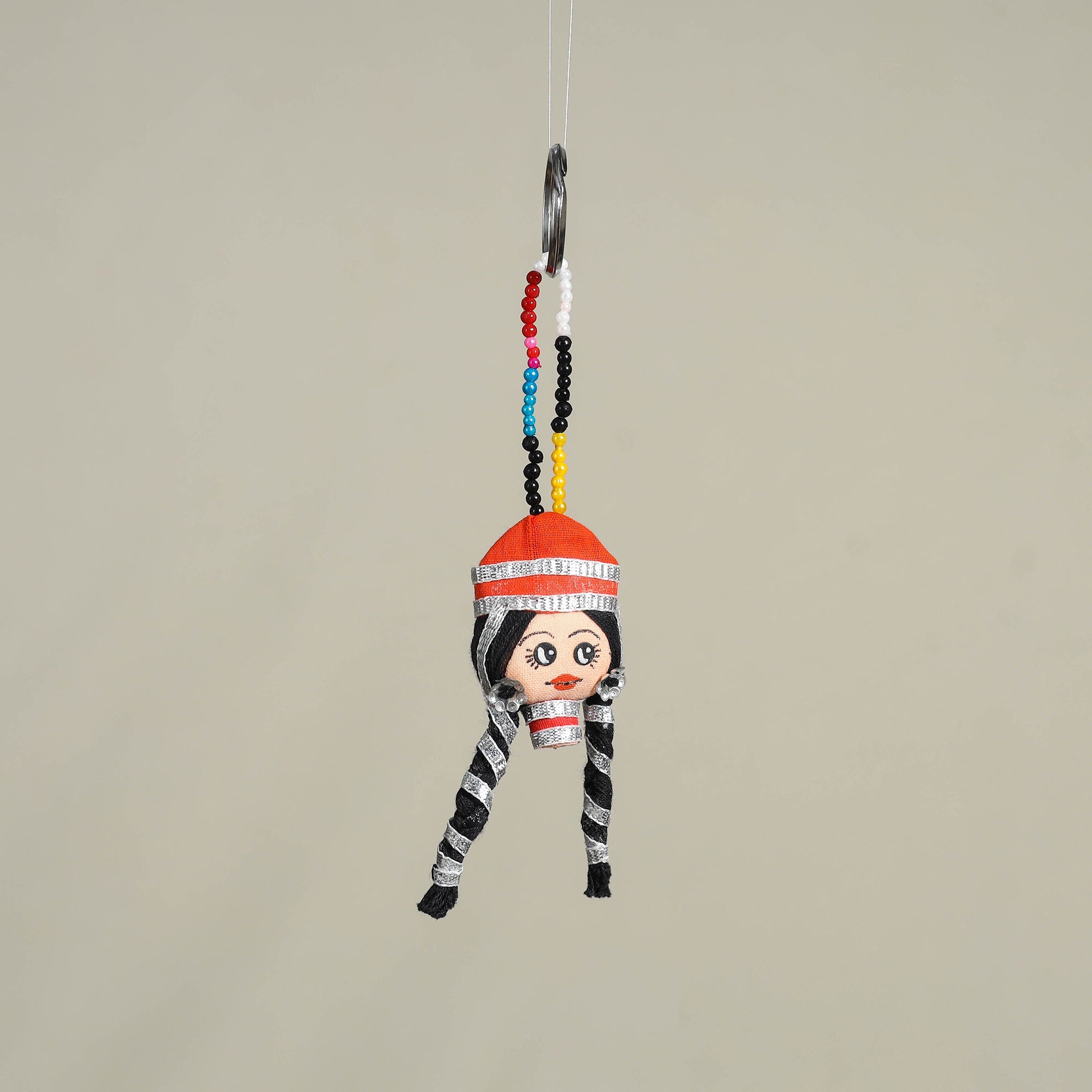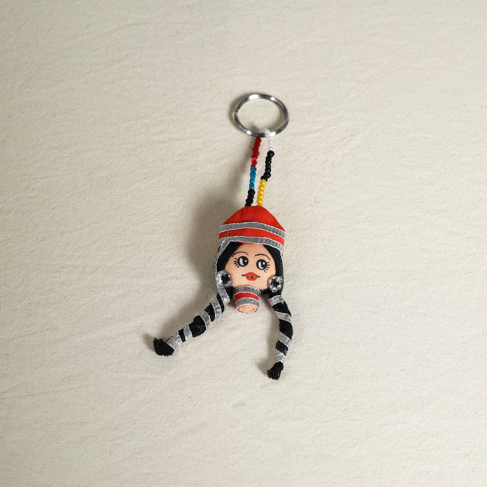 Add a touch of tradition and charm to your everyday essentials with this handcrafted red keychain made by skilled artisans. Crafted from vibrant fabrics, gota patti, sequins, and colorful beads, each piece is thoughtfully designed to add joy, colour, and a festive vibe to your keys, bags, or even small pouches, making it a perfect blend of function and decor.
