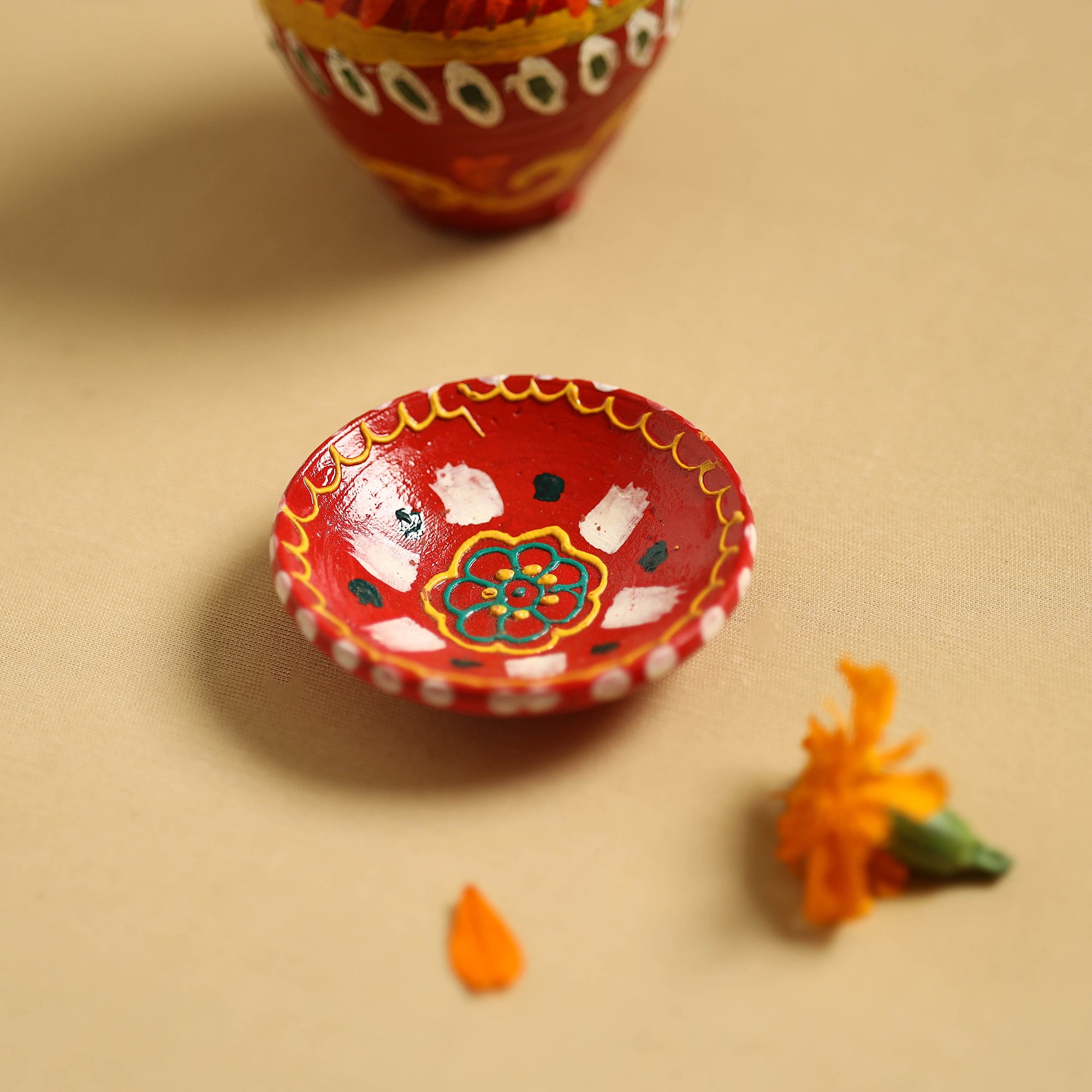 Elevate your worship rituals with this traditional handpainted clay karwa chauth pooja kalash. Crafted by skilled artisans, is a unique work of art. Perfect for your festive rituals. This eco-friendly kalash enhances your celebrations and supports sustainable craftsmanship.