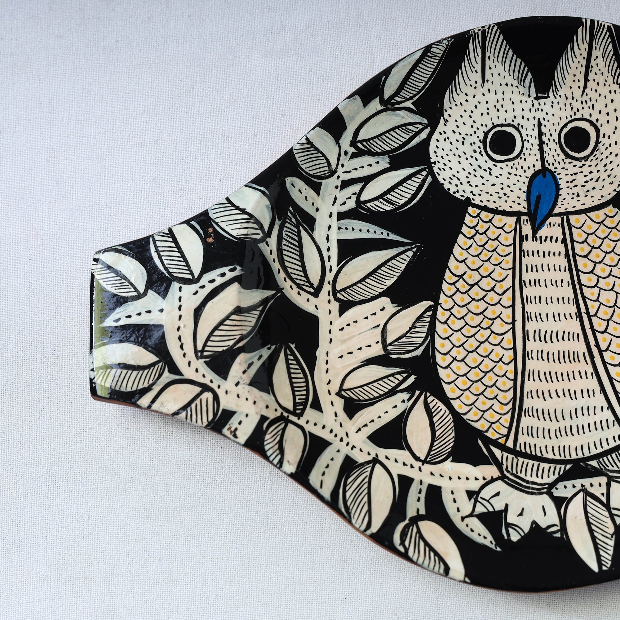 Traditional black pattachitra hand-painted Akashmoni wooden tray crafted in Midnapore by the family of Laltu Chitrakar. This tray features detailed pattachitra artwork made using acrylic colours and permanent ink on an Akashmoni wooden base. Known for its fine detailing, the Pattachitra style often illustrates mythological stories and folktales. The tray can be used for serving snacks or beverages, as a table decor accent, displayed as wall art or chosen as a thoughtful gifting option for art enthusiasts.