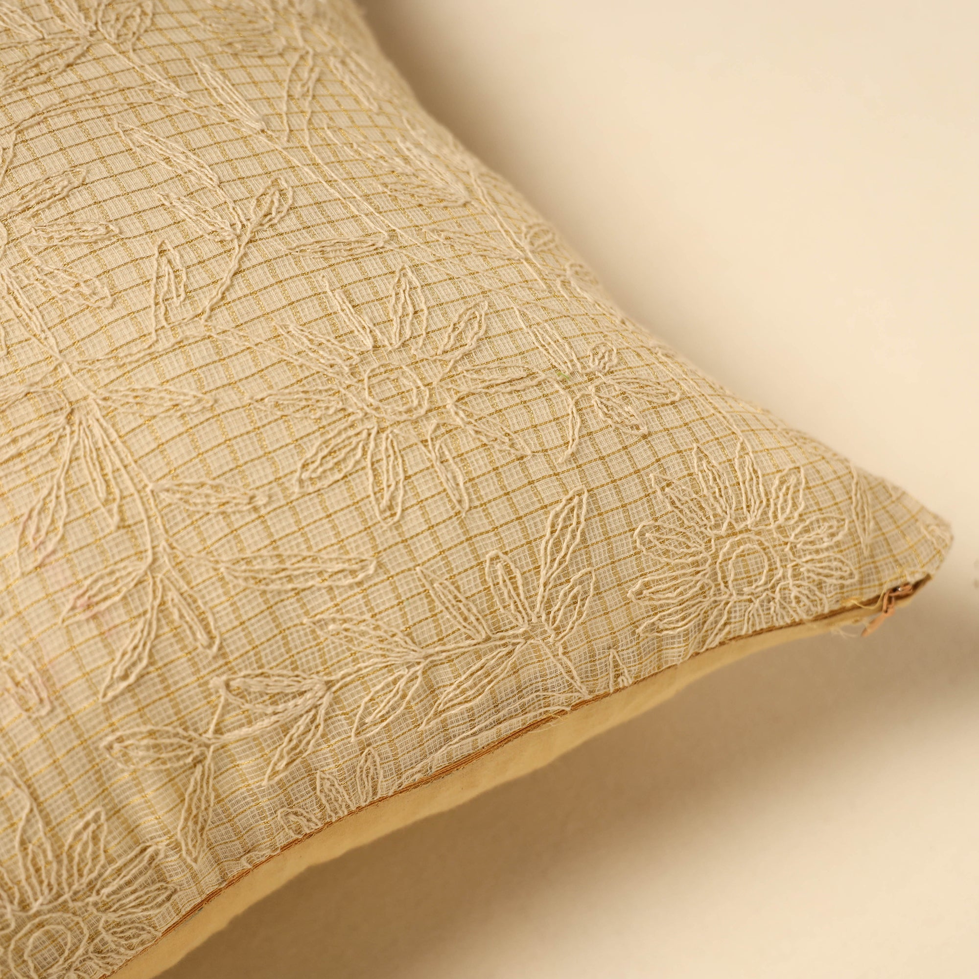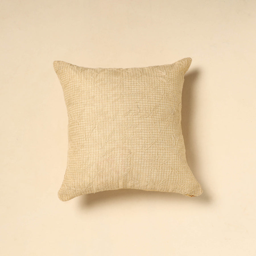 Add a touch of cultural elegance to your living space with this beautiful beige tussar silk cotton bengal kantha work cushion cover. Lightweight and durable, it is perfect for daily use. Ideal for enhancing sofas, chairs, or beds, this cushion cover effortlessly brings traditional artistry and timeless charm to any room.