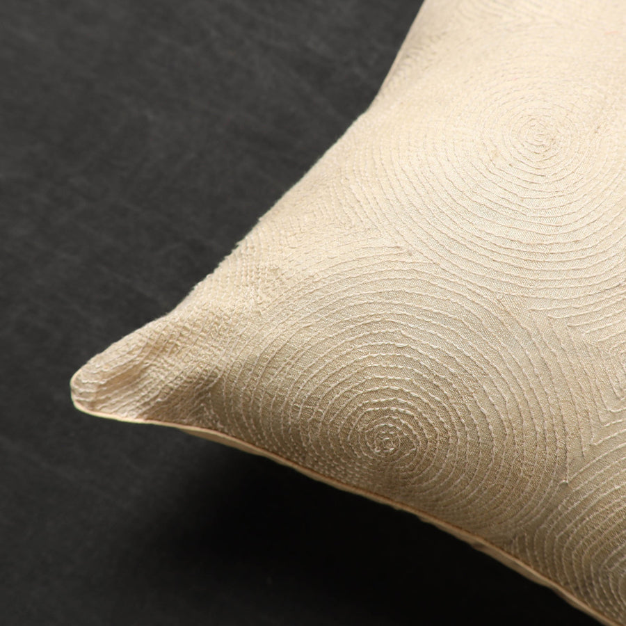 Tussar silk bengal kantha work beige cushion cover. Designed with intricate patterns using age old techniques its lightweight, durable and ideal for daily use. Perfect for enhancing sofas, chairs, or beds, this cushion cover brings cultural elegance to your living space.
